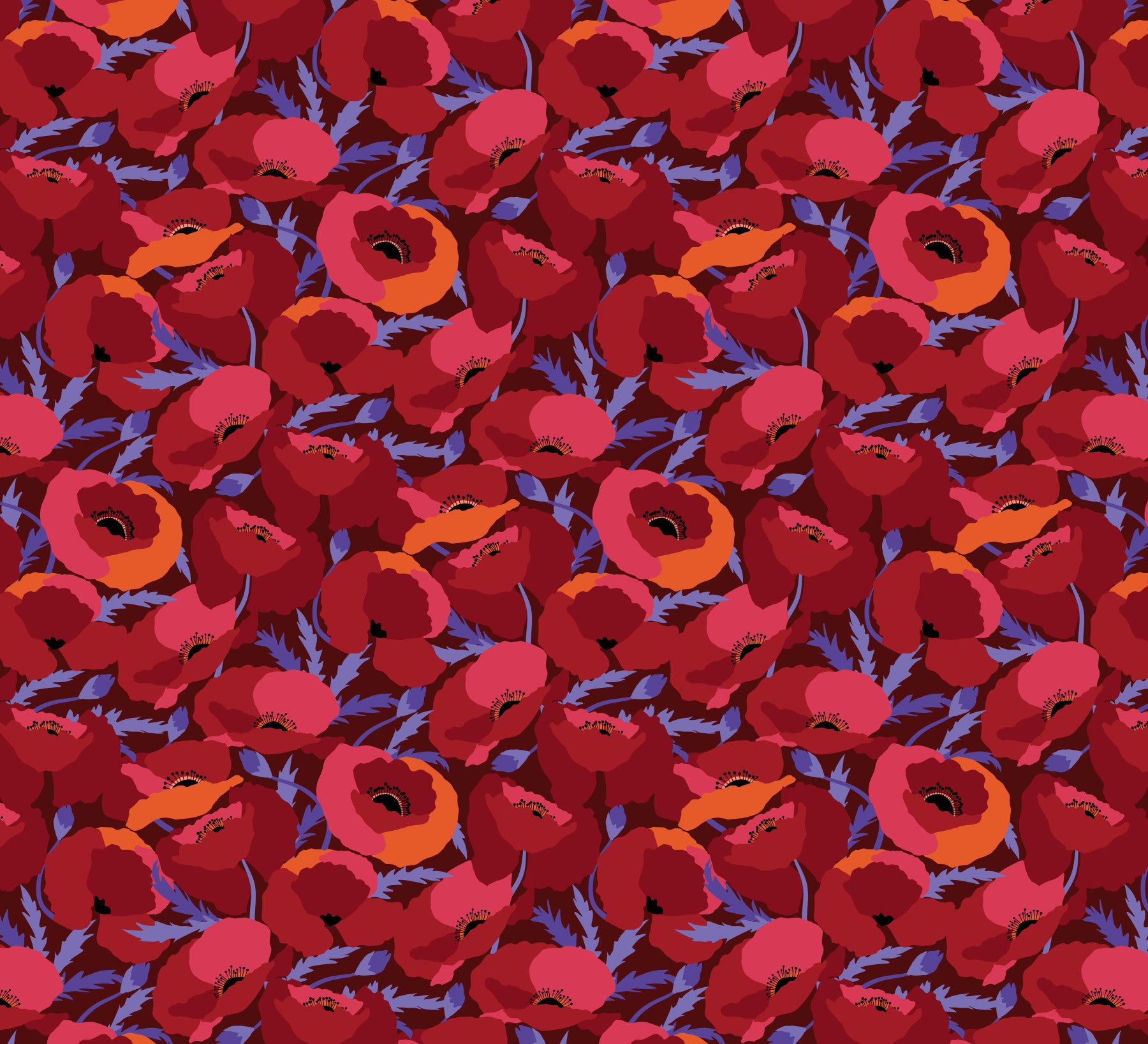 Immerse yourself in a vibrant tapestry of crimson poppies, their velvety petals bursting with rich, saturated hues. Shades of deep red, coral, and blush pink intertwine, creating a mesmerizing floral pattern that evokes a sense of passionate energy and romantic charm. The purple-toned foliage adds a touch of unexpected contrast, enhancing the overall dynamism of this bold and beautiful design. This wallpaper is perfect for adding a touch of sophisticated exuberance to any room.