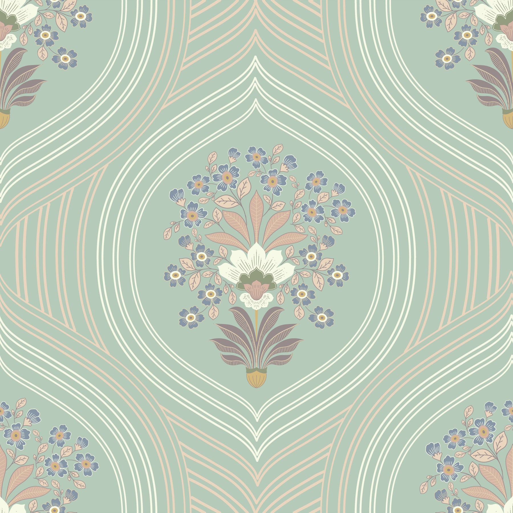 Experience the beauty of subtle elegance with this wallpaper featuring a captivating interplay of curved lines and delicate floral designs. The soft, muted color palette of sage green and blush tones creates a calming and refined atmosphere. The meticulously crafted floral motifs add a touch of vintage charm, while the rhythmic flow of the lines provides a sense of visual harmony and balance. Perfect for those seeking a sophisticated and tranquil aesthetic, this wallpaper is ideal for bedrooms, living rooms, or any space needing a touch of calming sophistication. It adds a subtle yet impactful design statement to your home decor.