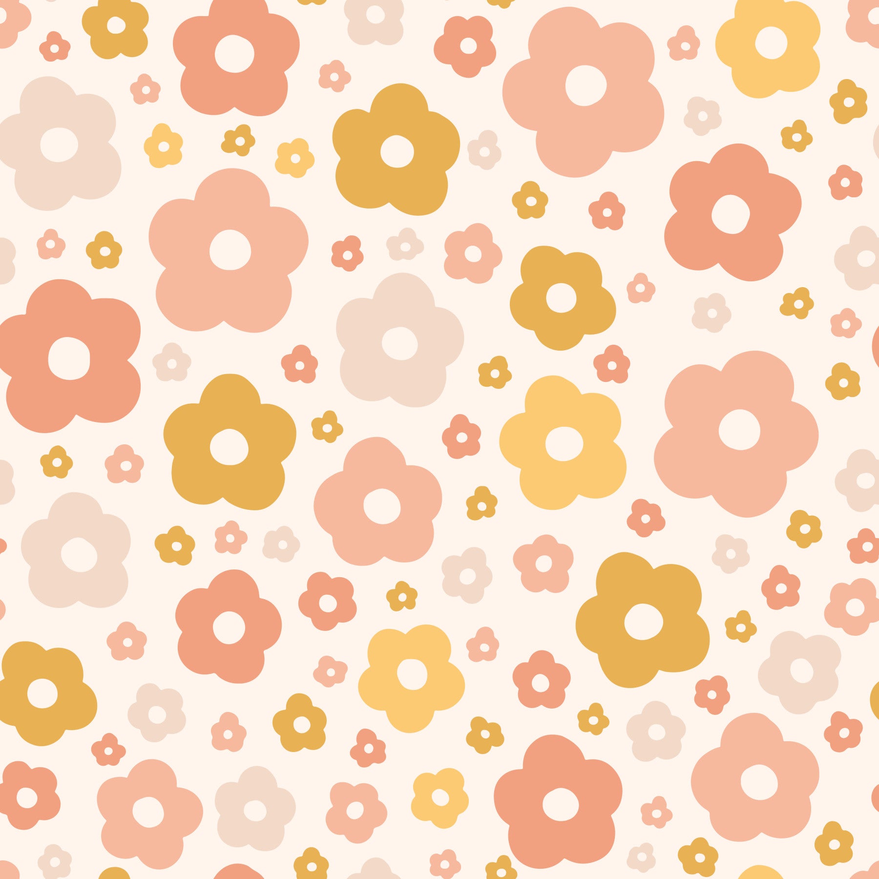 This wallpaper embraces simplicity with its charming pattern of small and large flowers in soft, pleasing colors. The delicate interplay of blush pinks, warm beiges, and subtle yellows creates a feeling of gentle warmth and comfort. Perfect for nurseries, bedrooms, or any space seeking a calming and inviting ambiance. The subtle color scheme and simple design allow this wallpaper to be a versatile addition to any décor style, creating a gentle and peaceful backdrop for everyday life.