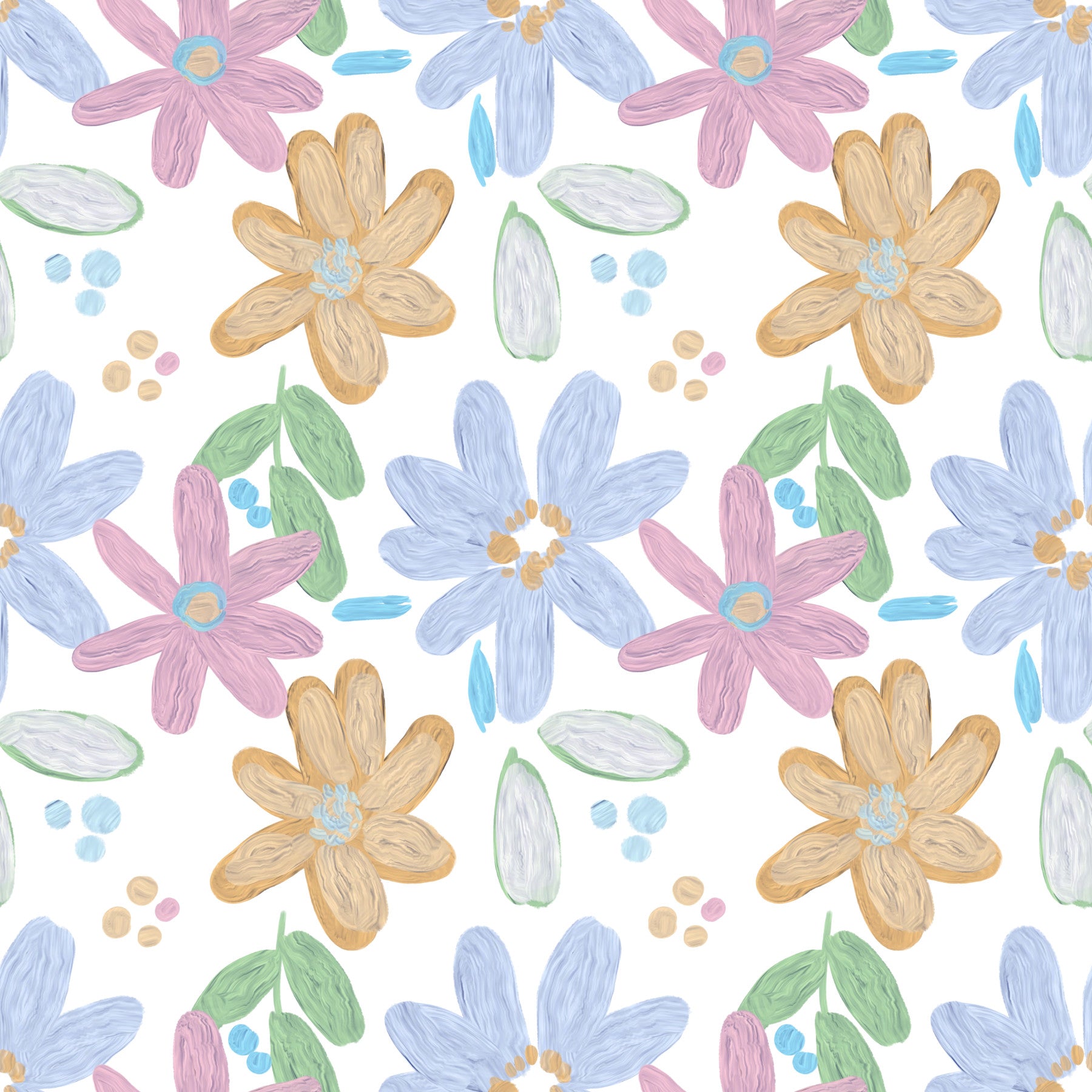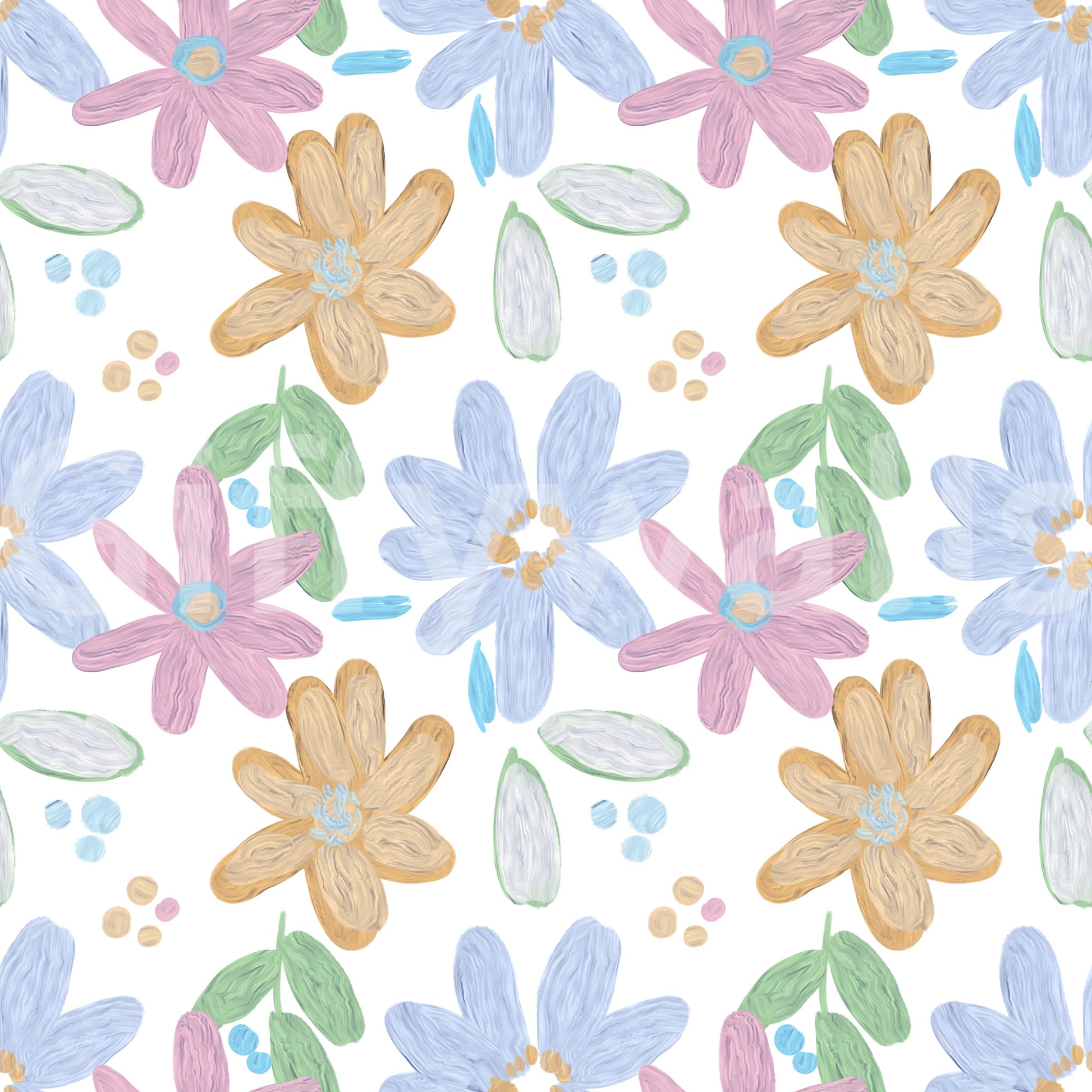 Bring the joy of a blooming spring garden into your space with this delightful "Cute Impasto Oil Painted Flowers Pattern" wallpaper. This whimsical design features charming, stylised flowers rendered in a thick, textured impasto style that mimics the depth and vibrancy of real oil paint. Soft hues of blush pink, sky blue, and warm gold dance across a clean white background, creating a light and airy feel. Scattered brushstroke accents add a playful touch, enhancing the handcrafted aesthetic. Perfect for nurseries, bedrooms, or any space where you want to cultivate a sense of cheerful serenity, this wallpaper promises to infuse your surroundings with a touch of artistic flair and irresistible charm. The subtle colour palette ensures versatility, blending seamlessly with a variety of interior styles, from modern minimalist to cosy farmhouse chic. Embrace the beauty of nature, captured in a truly unique and heartwarming design.