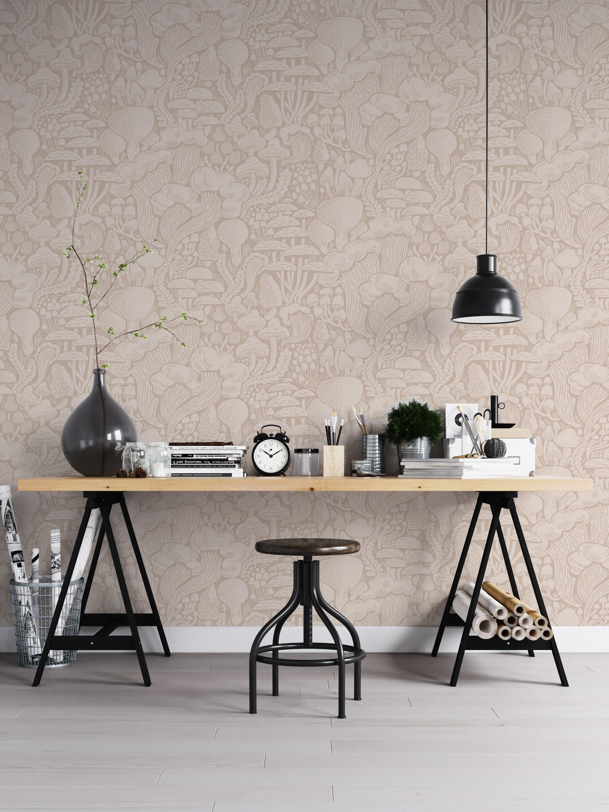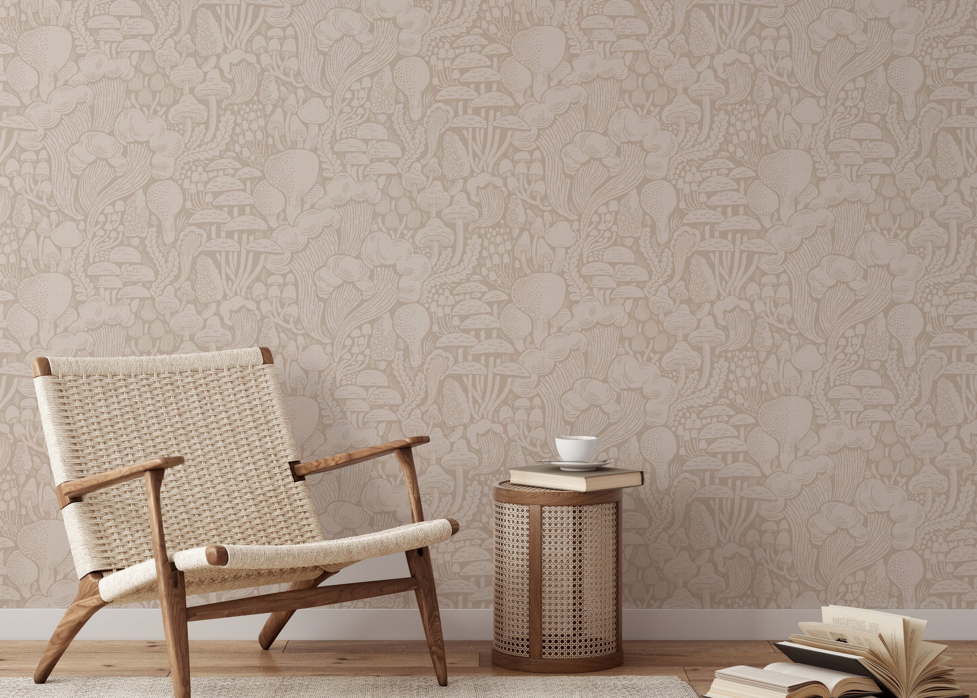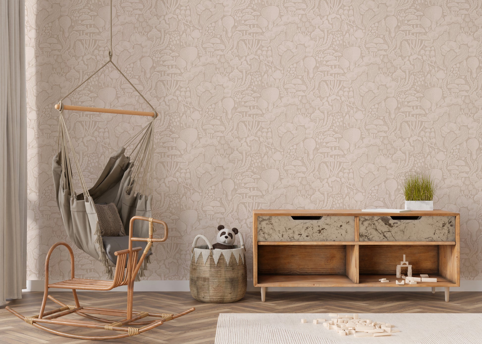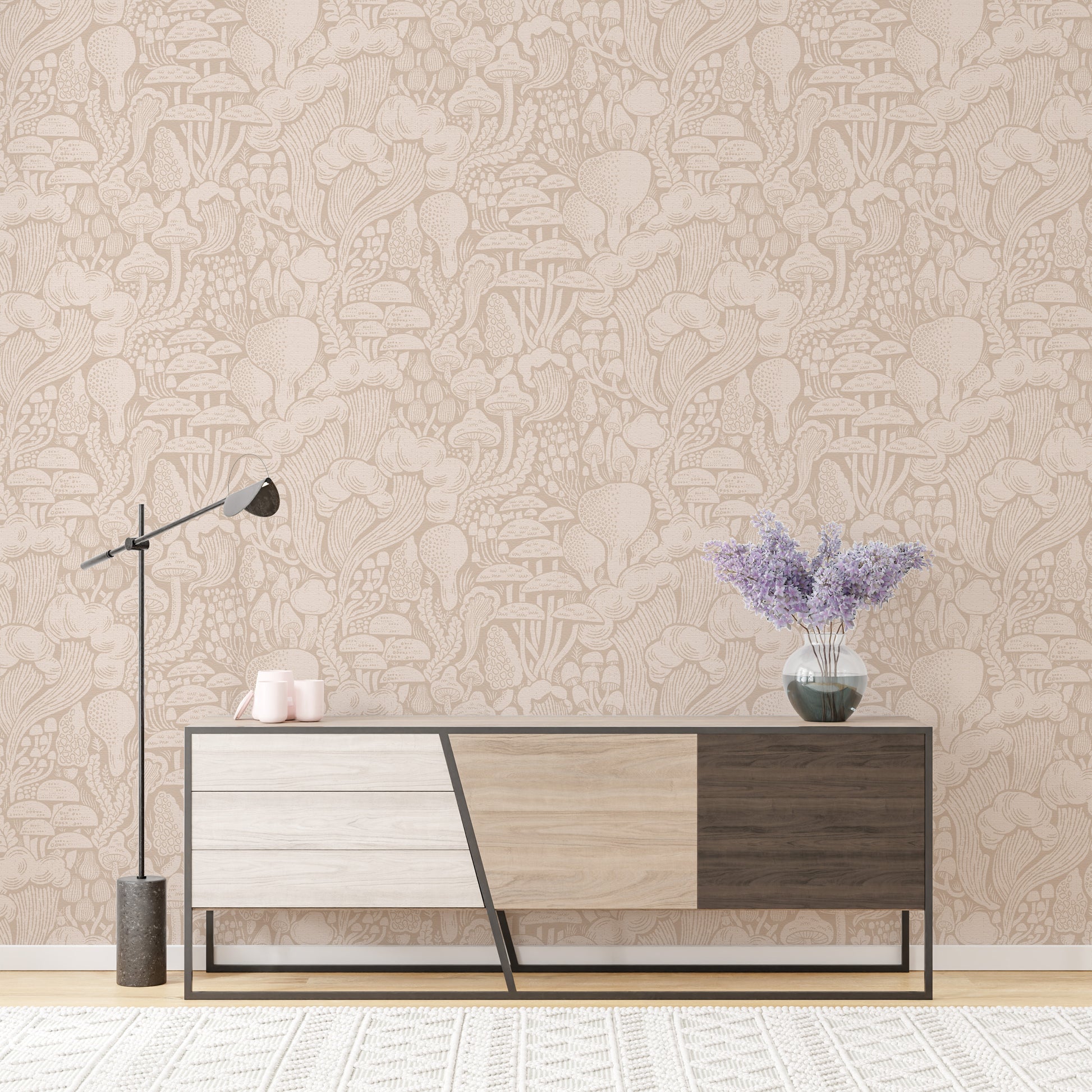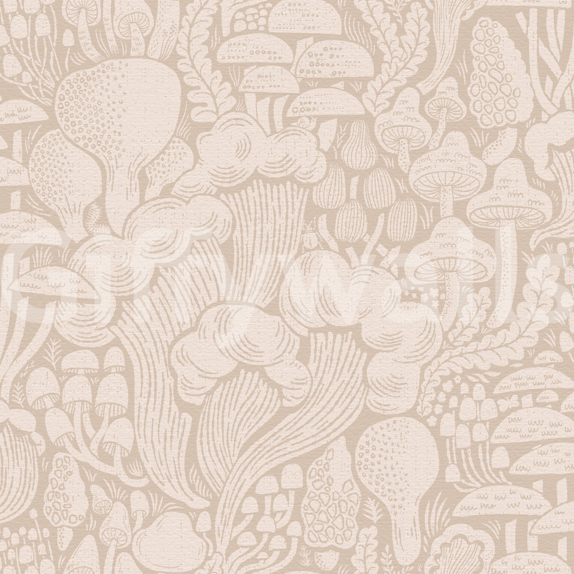 Embrace the ethereal beauty of this 'Dagg-Toned Fungi Forest Silhouettes' wallpaper. A delicate palette of beige and off-white creates a serene atmosphere, showcasing stylized mushroom silhouettes in various shapes and sizes. The textured background adds depth and a touch of rustic charm, reminiscent of a linocut print. Intricate details within each fungal form, alongside subtly rendered foliage, evoke a sense of mystery and quiet wonder within a hidden forest. This wallpaper is perfect for adding a touch of whimsical nature to any digital device.