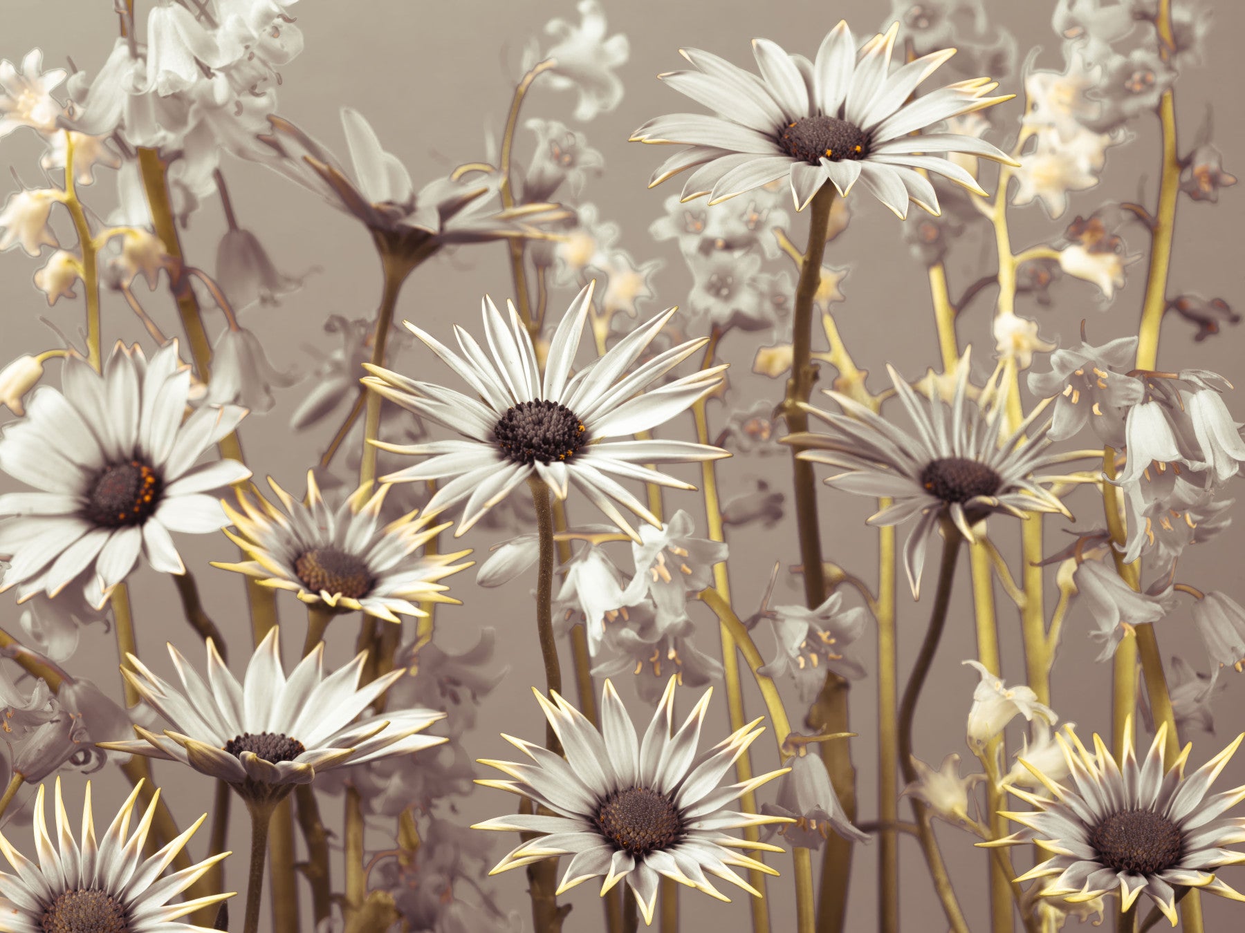 Dreamy daisy wallpaper filled with gentle flowers in a soft, ambient palette.