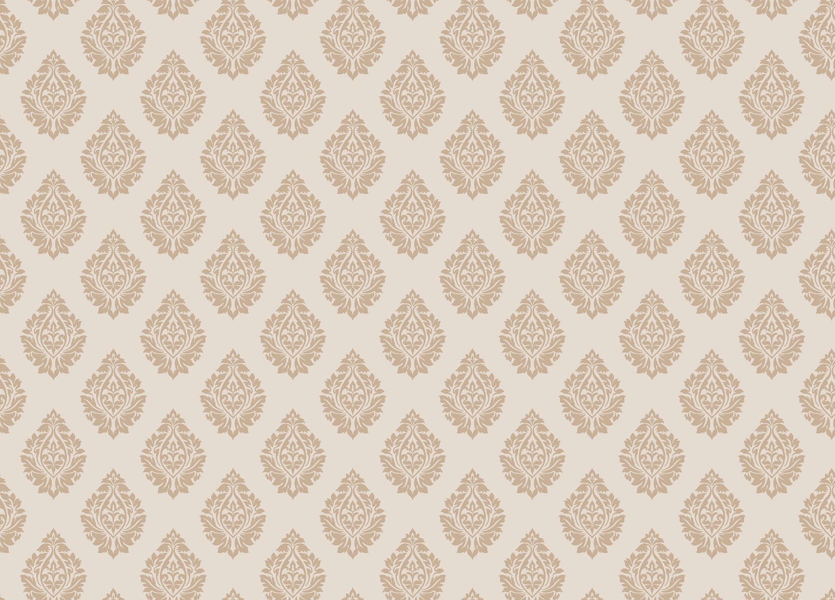 Beige damask wallpaper with timeless Victorian repeat patterns.