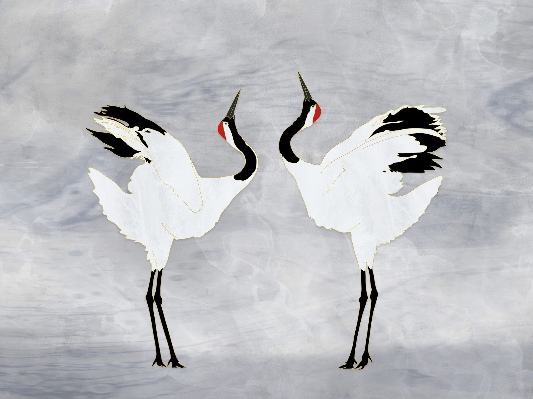 This Dancing Cranes wall mural captures the graceful movement of two red-crowned cranes against a soft, ethereal backdrop. Their striking white plumage, contrasted by deep black wingtips and vivid red caps, brings a touch of natural elegance to any interior. The flowing, fluid lines of the birds create a sense of harmony and poise. Ideal for creating a serene focal point, this wall mural blends traditional artistic themes with a modern, minimalist aesthetic, perfect for sophisticated living spaces.