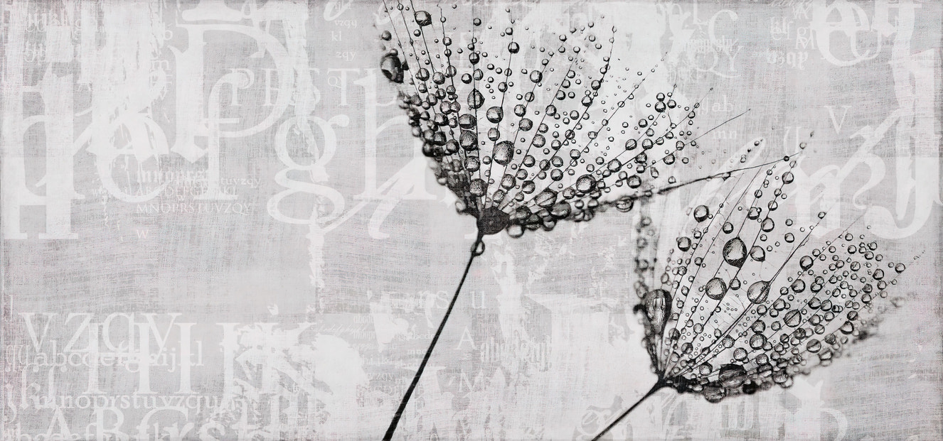 Elegant mural featuring delicate dandelion seeds in motion.