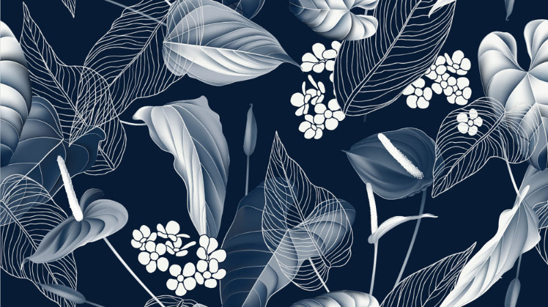 Dark Blue Anthurium & Blue Leaves Wallpaper - Giffywalls