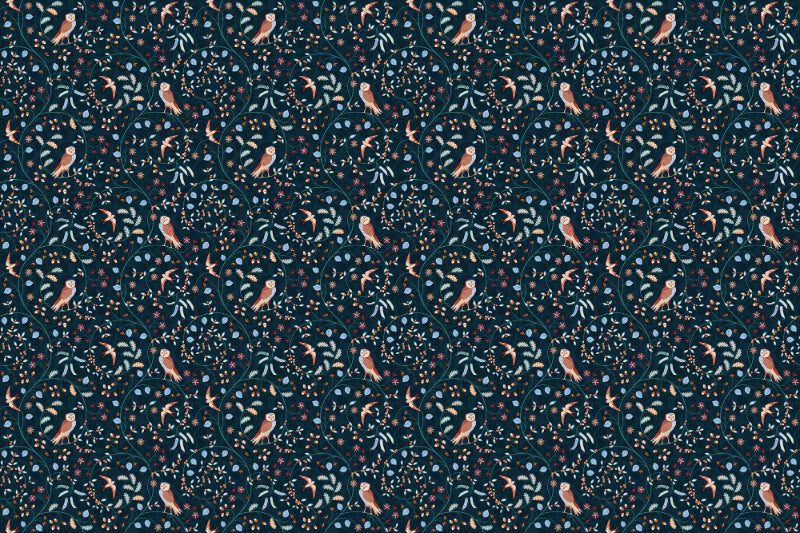 Create a serene and tranquil retreat in your bedroom with our Dark Blue Flower and Birds Wallpaper for Tranquil Bedroom Interiors. This calming design features delicate flowers and birds set against a deep blue background, evoking a peaceful nighttime garden. Ideal for those seeking to turn their bedroom into a soothing sanctuary, this blue flower wallpaper combines the beauty of nature with a soothing color palette to foster relaxation and tranquility. Let the elegant simplicity of flowers and birds transform your bedroom into a restful escape, where every day ends in peace and harmony.
