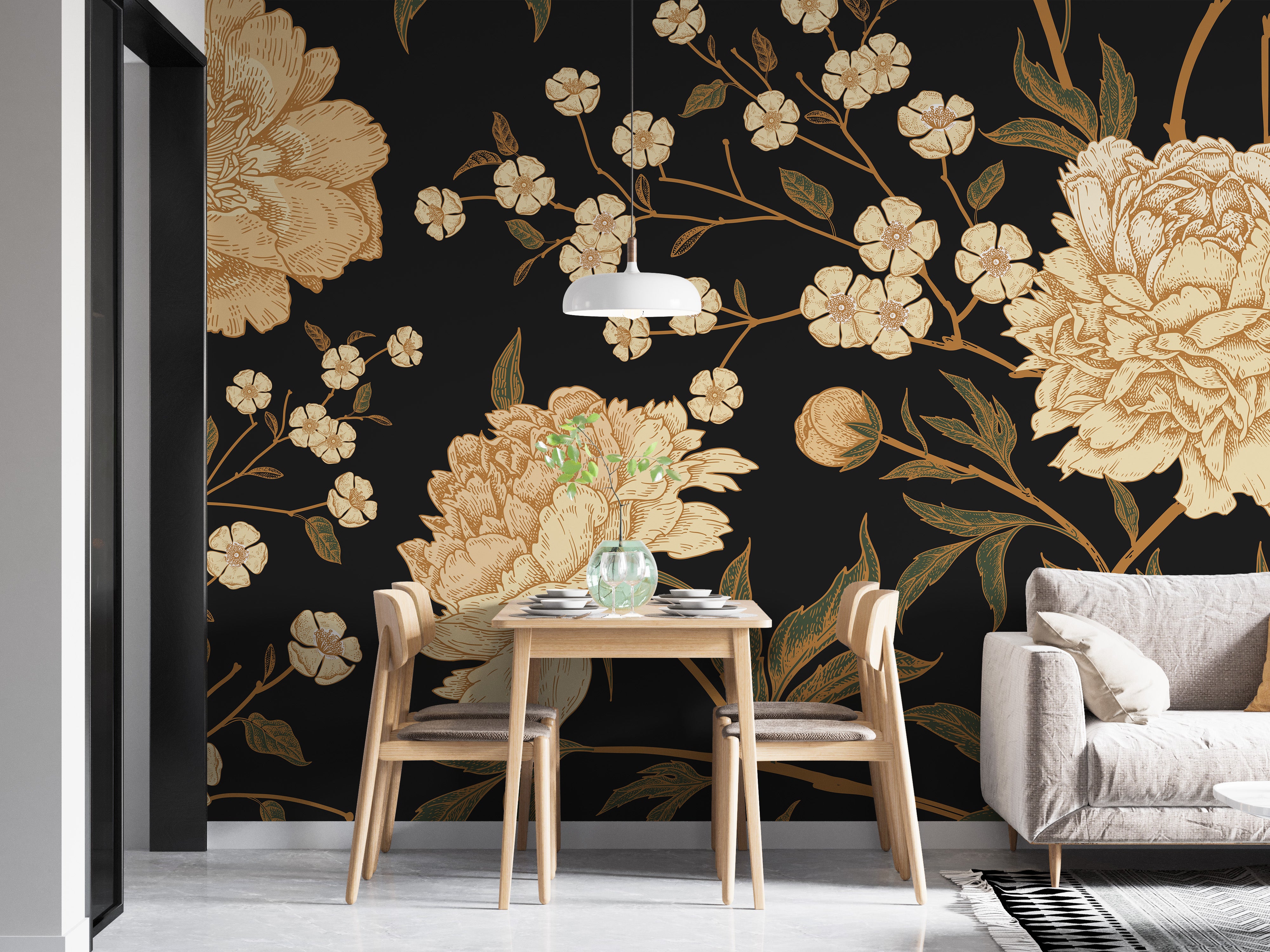 Elevate your interior with the luxurious allure of our Dark Peony Flowers Wallpaper Mural. This captivating design features lush peony flowers blooming against a dramatic dark background, creating a bold and romantic atmosphere. The rich colors and detailed petals add depth and sophistication to any room, making it a perfect choice for creating a stunning feature wall. Ideal for bedrooms, living rooms, or dining areas, this moody floral beauty wallpaper mural brings the beauty of a midnight garden into your home, providing an enchanting backdrop that's both modern and timeless.
