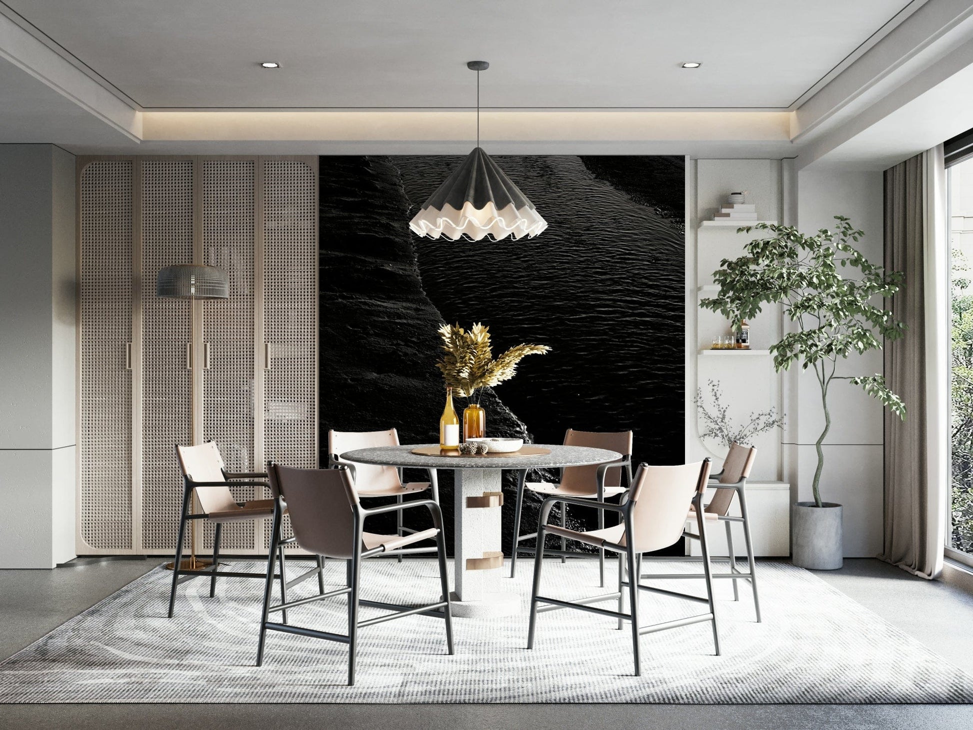 Immerse yourself in the enigmatic allure of "Dark River I." This striking black and white wallpaper captures the sombre beauty of a river snaking its way through a desolate landscape. The image is dominated by deep shadows and subtle textures, creating a mood that is both melancholic and captivating. Glimmers of reflected light dance across the water's surface, offering a faint glimmer of hope amidst the surrounding darkness. The stark contrast between the stark river banks and the flowing water evokes a sense of solitude and introspection. Ideal for adding a touch of sophisticated drama to any screen, "Dark River I" invites you to contemplate the quiet power of nature and the hidden depths that lie beneath.