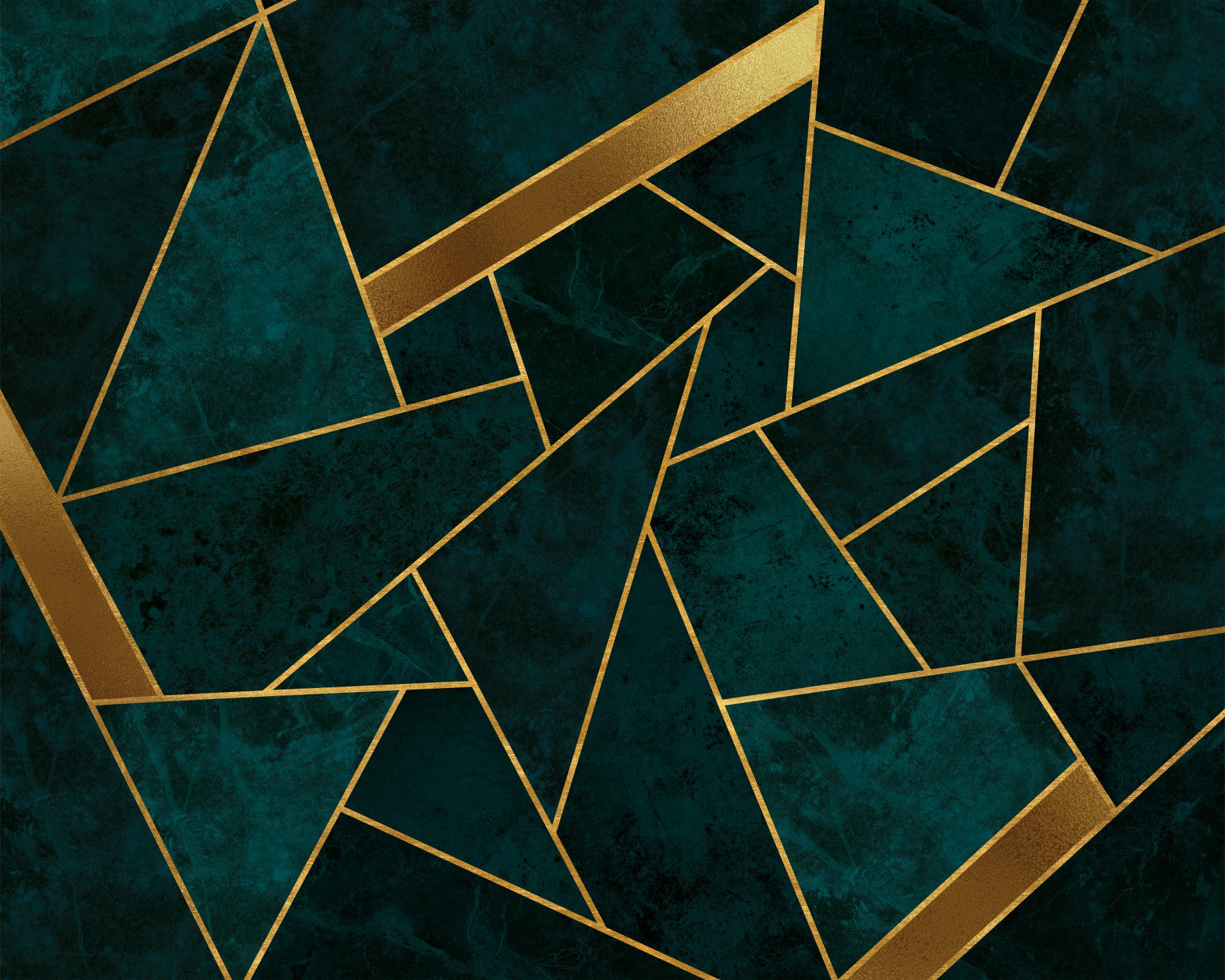 TheDark Teal and Gold Mosaic Wall Mural brings an opulent touch to any room with its rich jewel-toned background and bold, geometric gold lines. Inspired by mid-century and art deco influences, this mural is perfect for anyone seeking a luxurious and contemporary design. The deep teal texture evokes sophistication, while the sharp golden divisions add energy and visual intrigue. Ideal for feature walls in living rooms, offices, or stylish hallways, this mural transforms interiors with its upscale character and timeless flair. Elevate your decor with this bold yet refined mosaic statement piece.