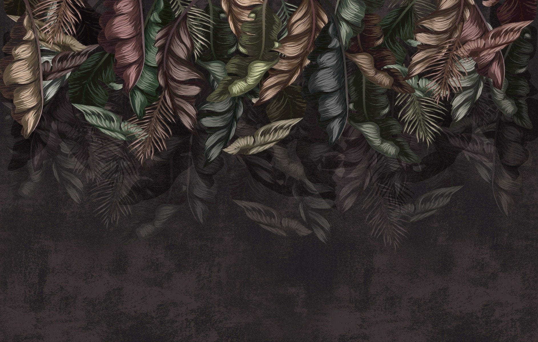 Dark Hanging Tropical Leaves Wallpaper Mural - Giffywalls