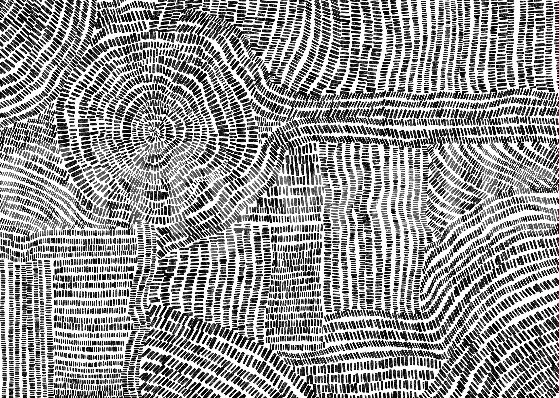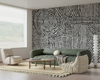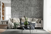 Transform any room with this striking black and white wallpaper for walls. The design features a dynamic arrangement of short dashes and dots, creating a maze-like pattern. This high-contrast, monochrome scheme introduces a bold, artistic statement without overwhelming the space. This wallpaper works exceptionally well in modern living rooms, home offices, or hallways, adding a touch of sophistication and visual interest. The stark contrast enhances natural light, giving a brighter, more open feel. Its geometric rhythm offers an engaging backdrop for artwork, furniture and décor, lending a contemporary flair to your interior.