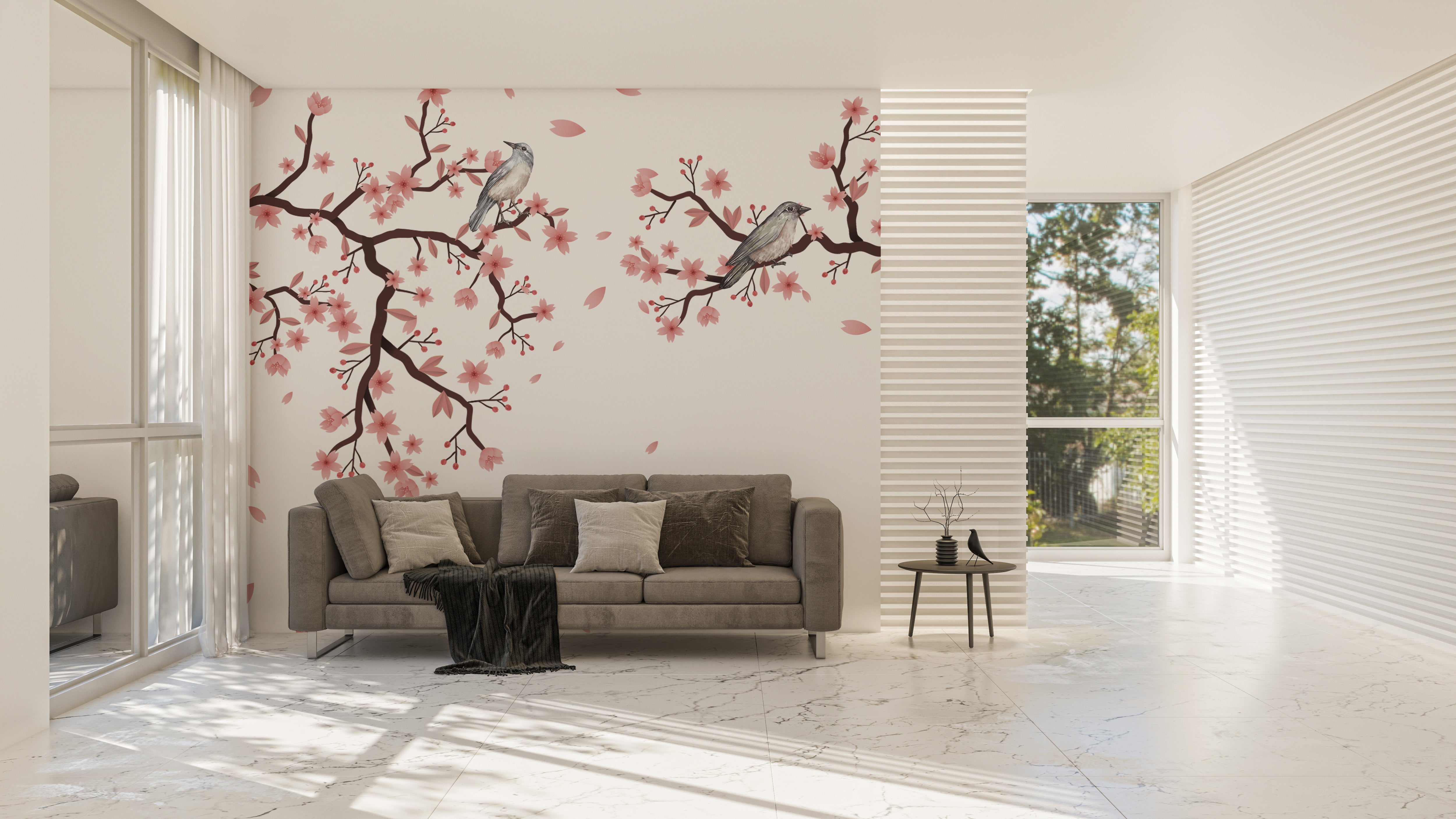 Dawn Chorus Cherry Blossom Mural art for Living Area