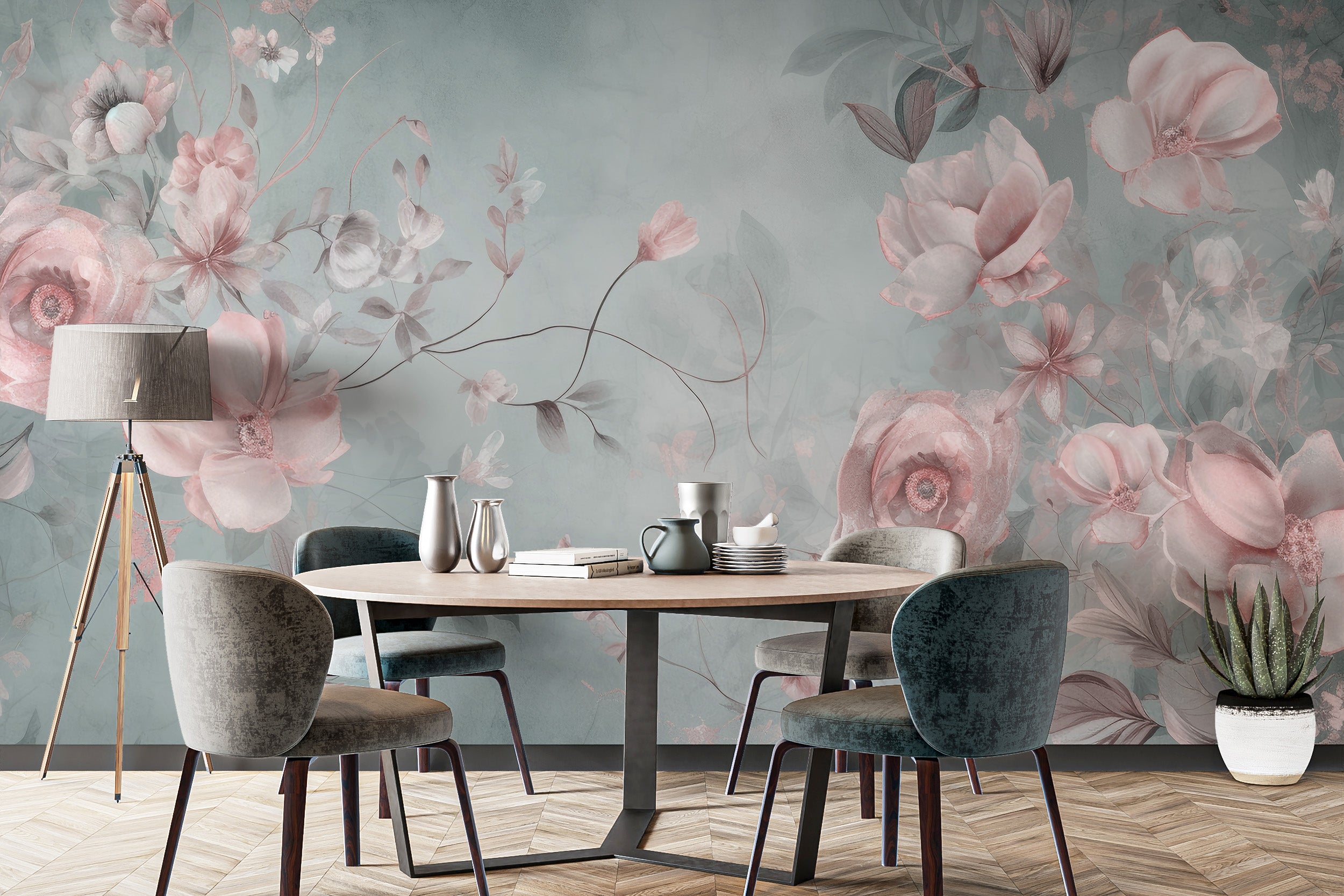 Embrace the gentle romance of the delicate blooming pink flower mural, where each brushstroke tells a story of growth and renewal. With its lush portrayal of pink flora, these mural blooms ceaselessly, creating a harmonious retreat in your haven. The tender pinks are a visual whisper, soothing the gaze with their natural grace. As a backdrop, it becomes a canvas, where the dance of light and shadow brings each petal to life. Crafted for those who appreciate the subtleties of nature's artistry, it offers a silent sonnet to the senses. This wallpaper does more than just cover a wall it weaves a tale of perennial beauty, turning any room into a chapter of an endless spring.