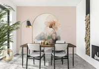 Floral Mist wall mural showcasing gentle blooms in soft, muted hues for timeless elegance.