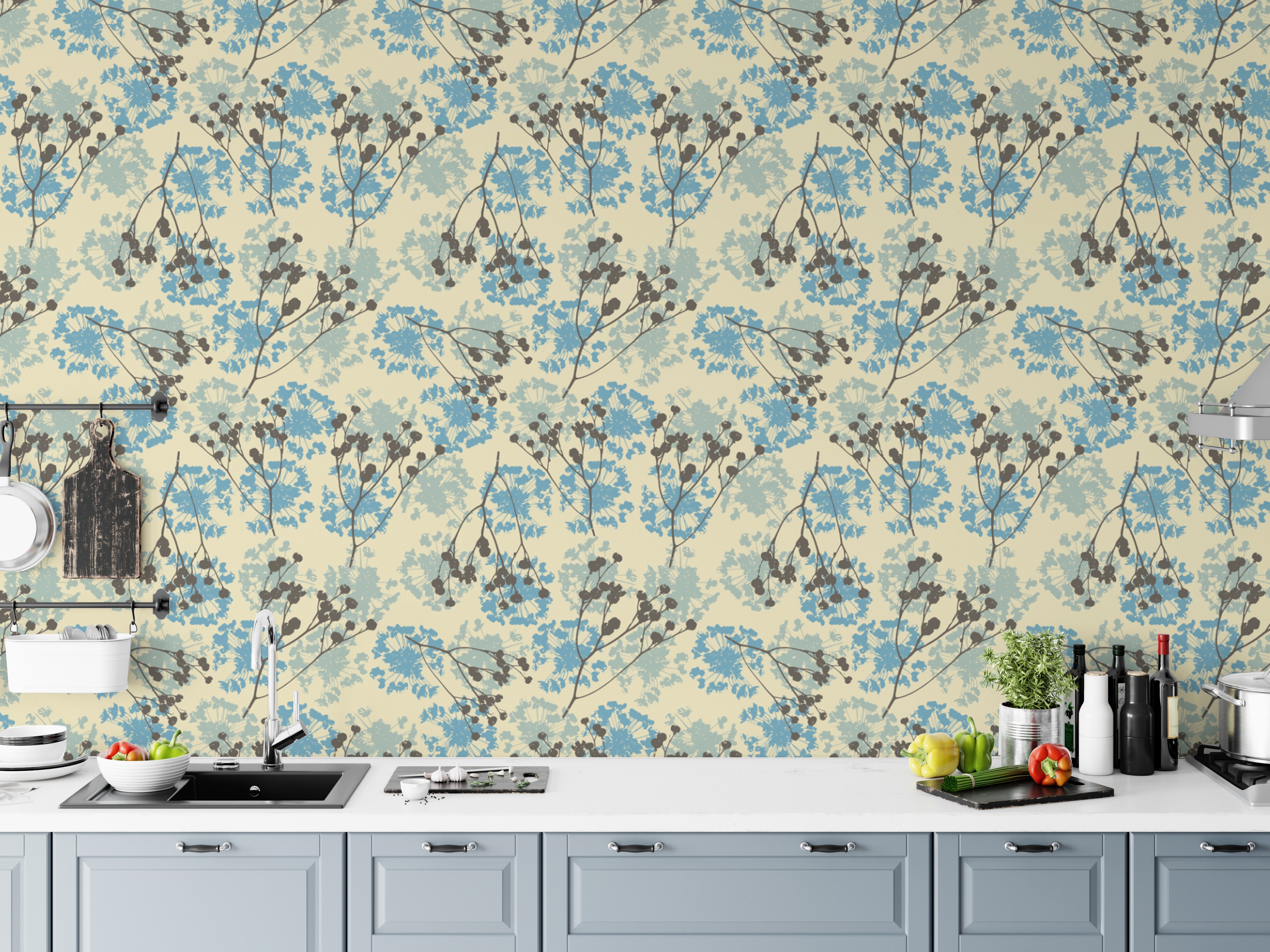 Artistic wallpaper mural featuring delicate floral motifs.