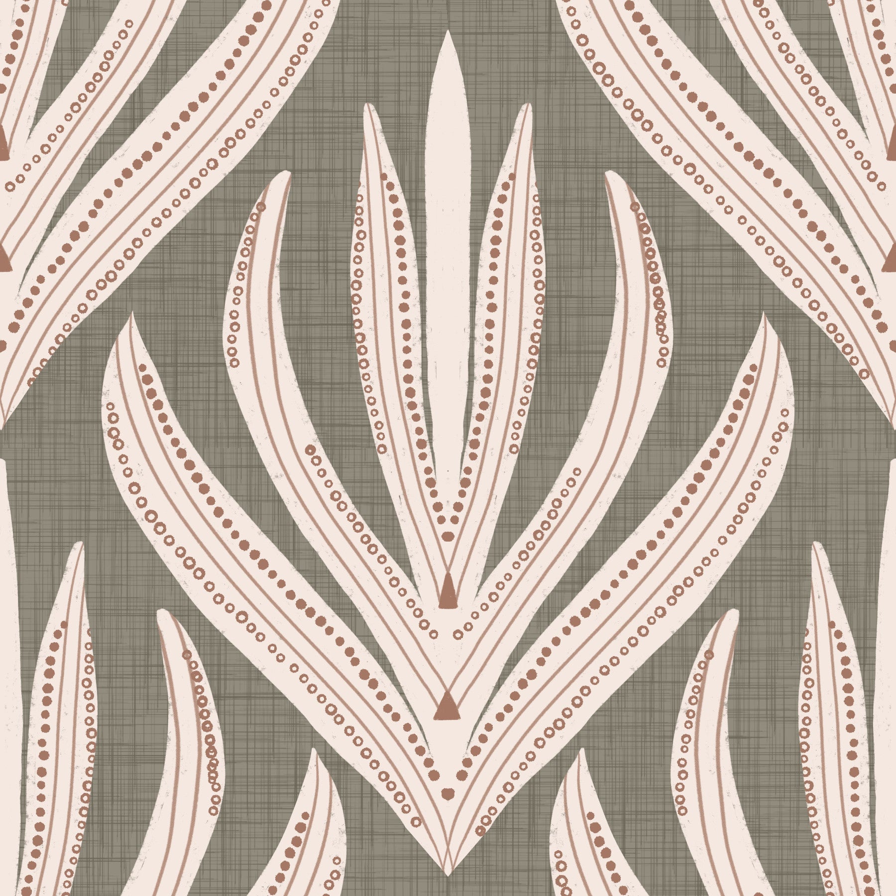 Desert Bloom Echo wallpaper showcasing symmetrical botanical designs with subtle geometric detailing.