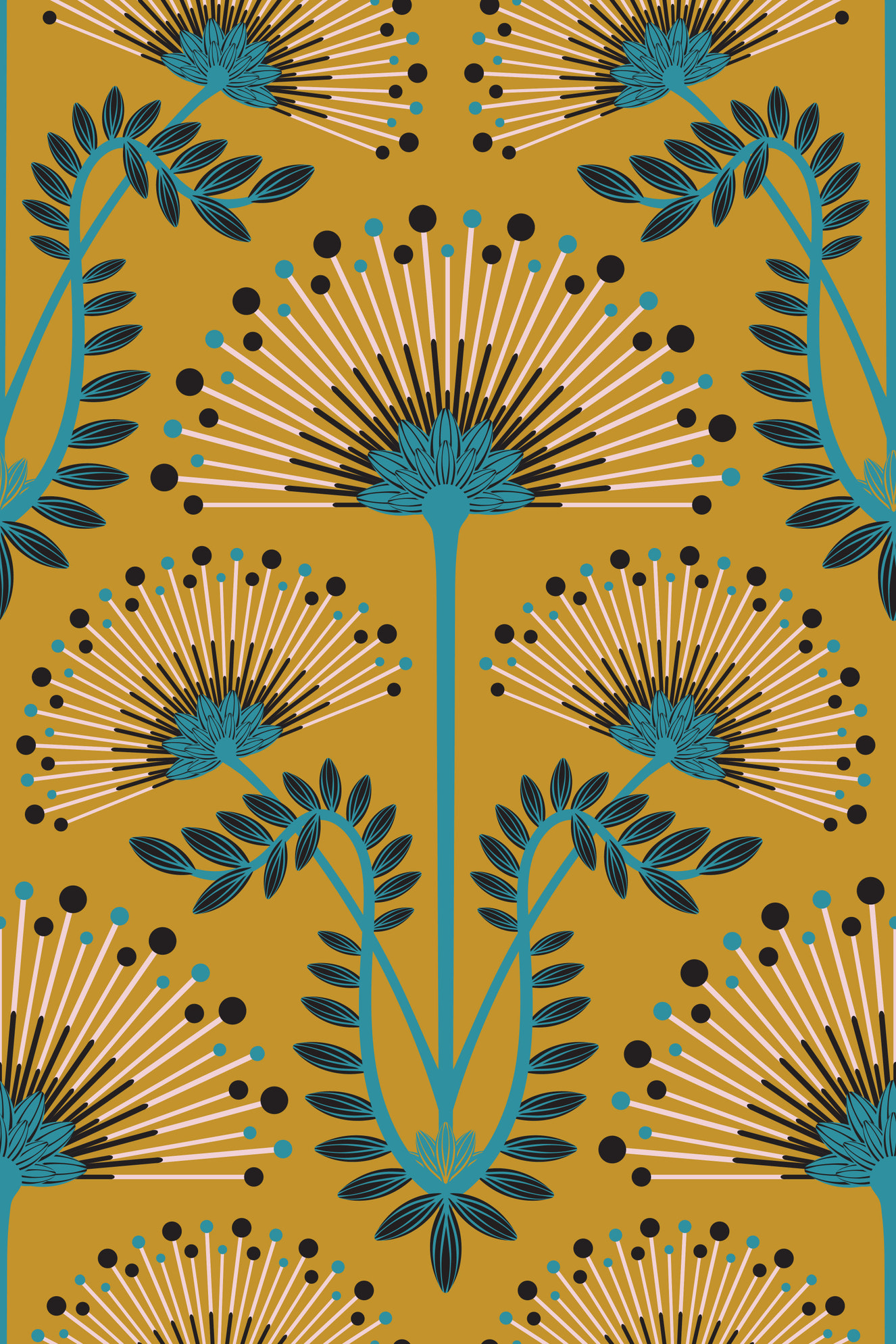 Retro tropical wallpaper with a perfect balance of aqua, pink, and earthy tones.