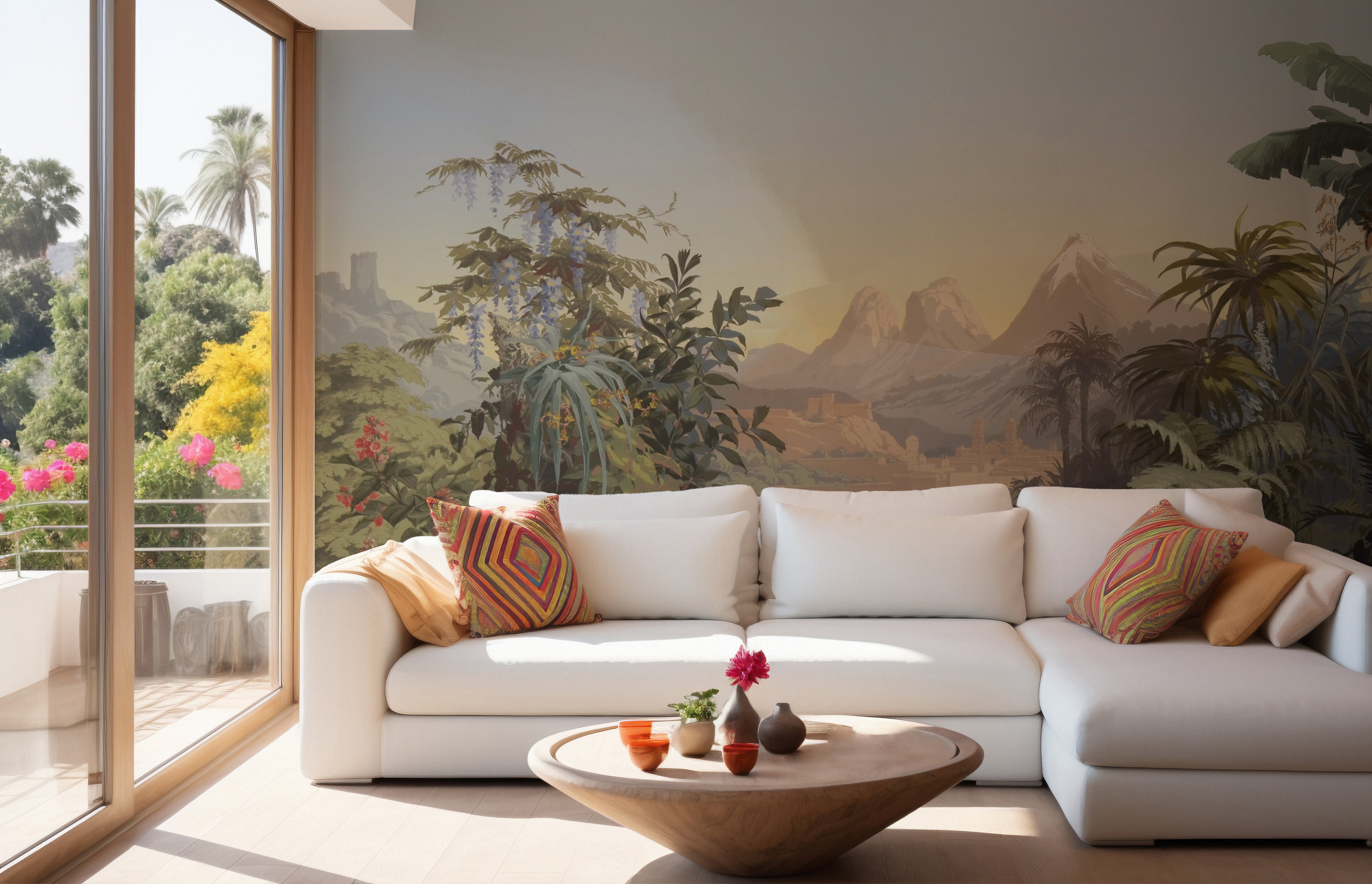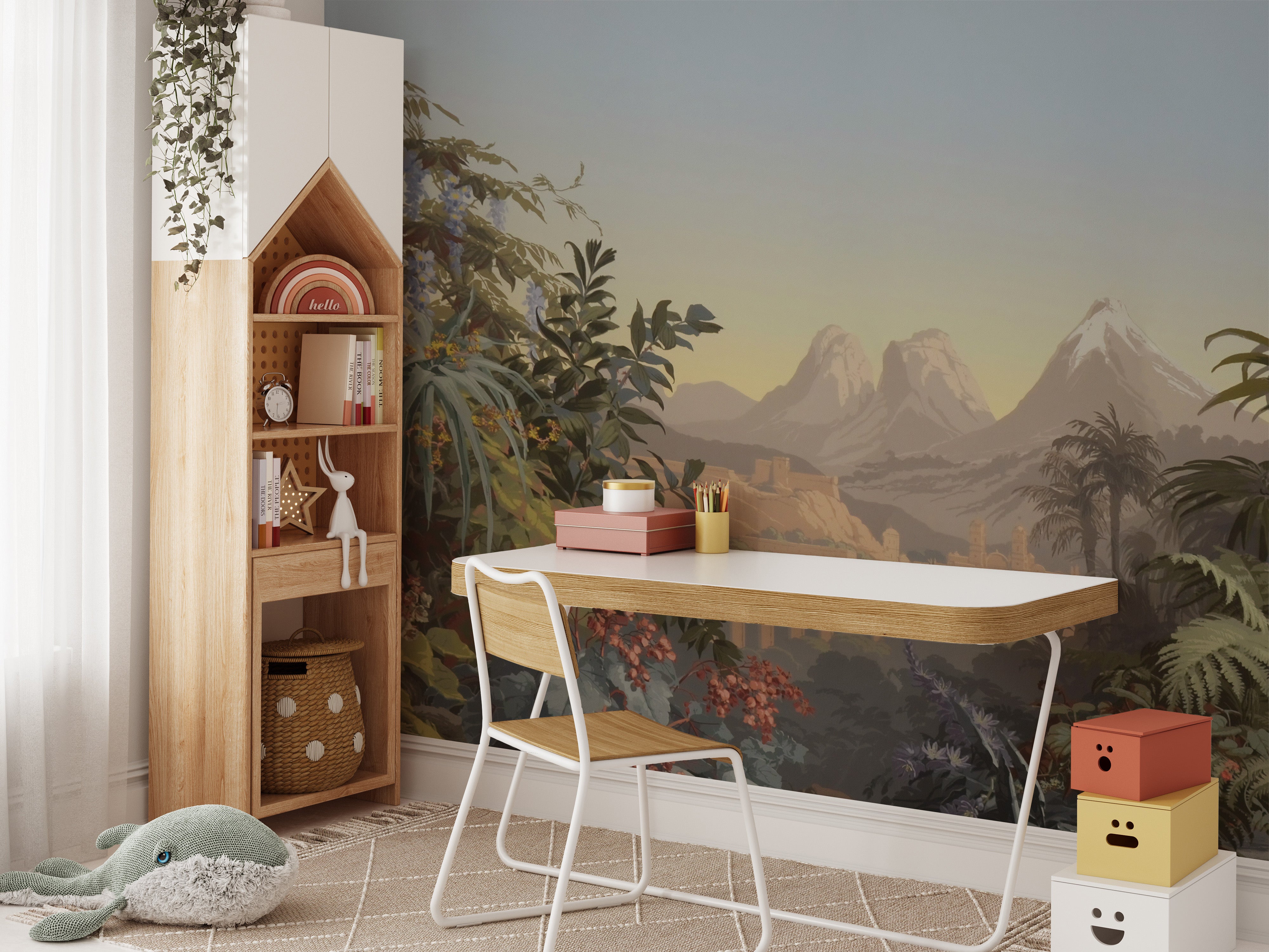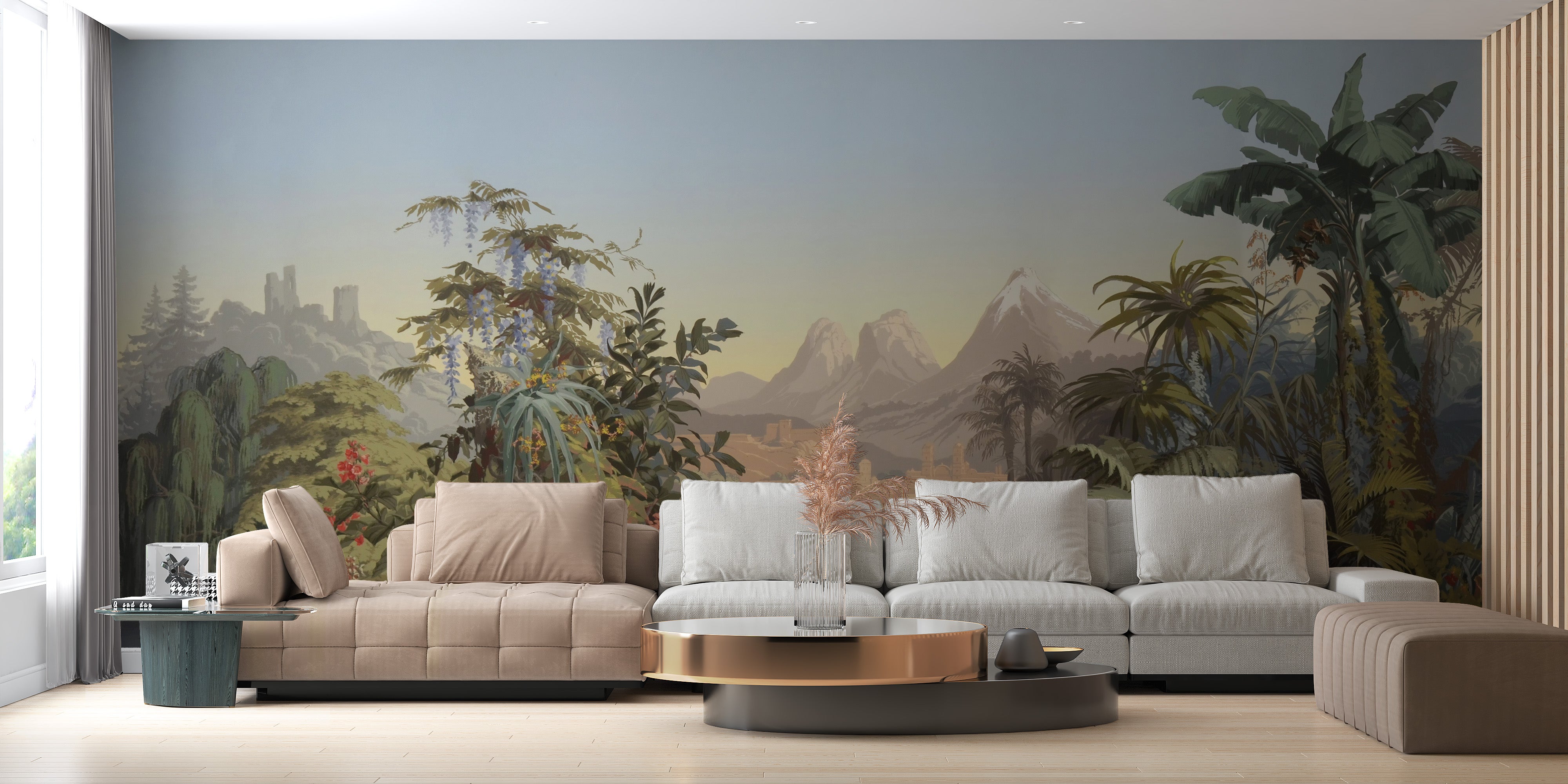 Imagine stepping into your living room and being transported to a lush tropical forest nestled in the mountains. With our new mural wallpaper, you can bring the tranquility and beauty of nature right into your home. The vibrant colors and intricate details of the tropical foliage and majestic mountain peaks will captivate your senses and create a peaceful atmosphere that inspires relaxation and renewal.  Whether you're looking to add a bold statement piece to your decor or simply want to create a serene escape from the hustle and bustle of everyday life, our Tropical Forest &Mountains mural wallpaperis the perfect addition to any room.