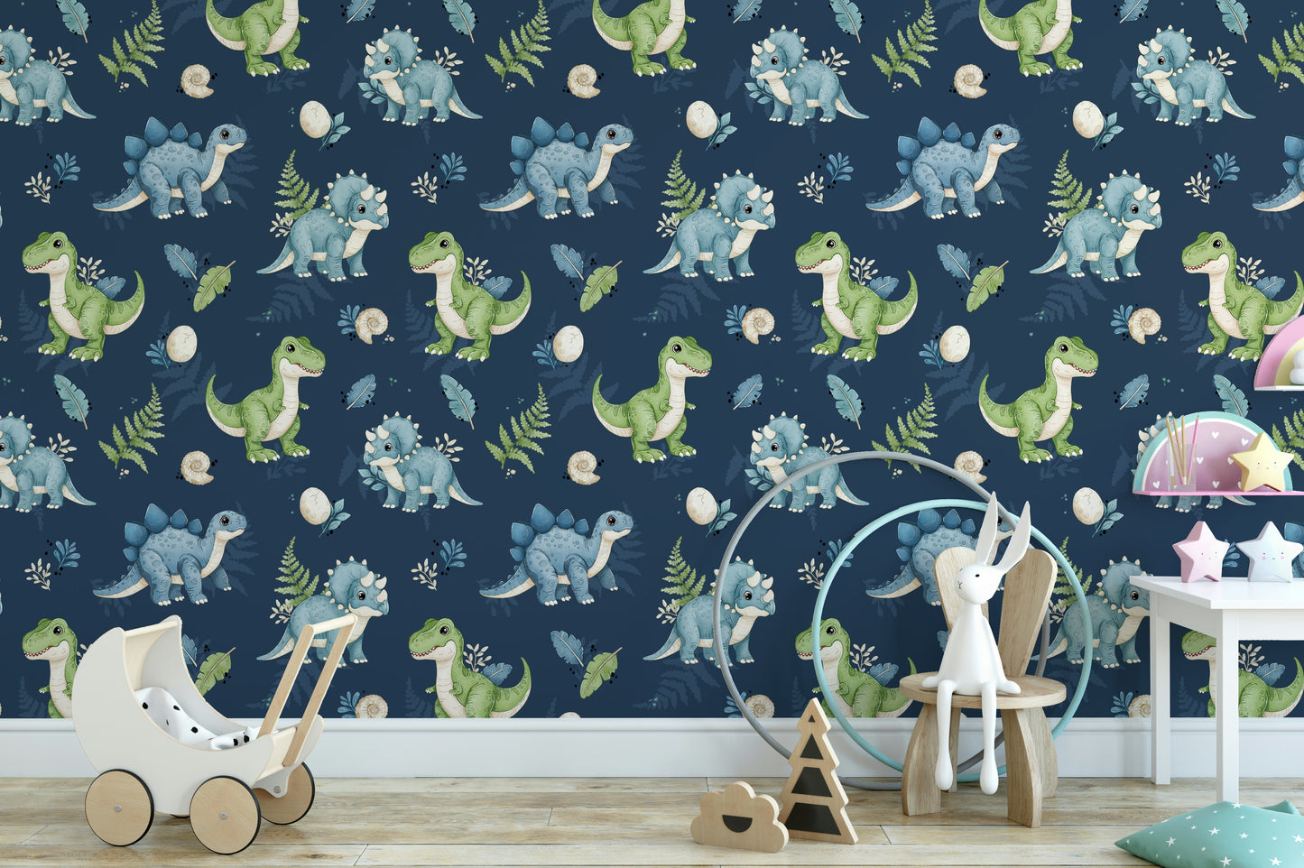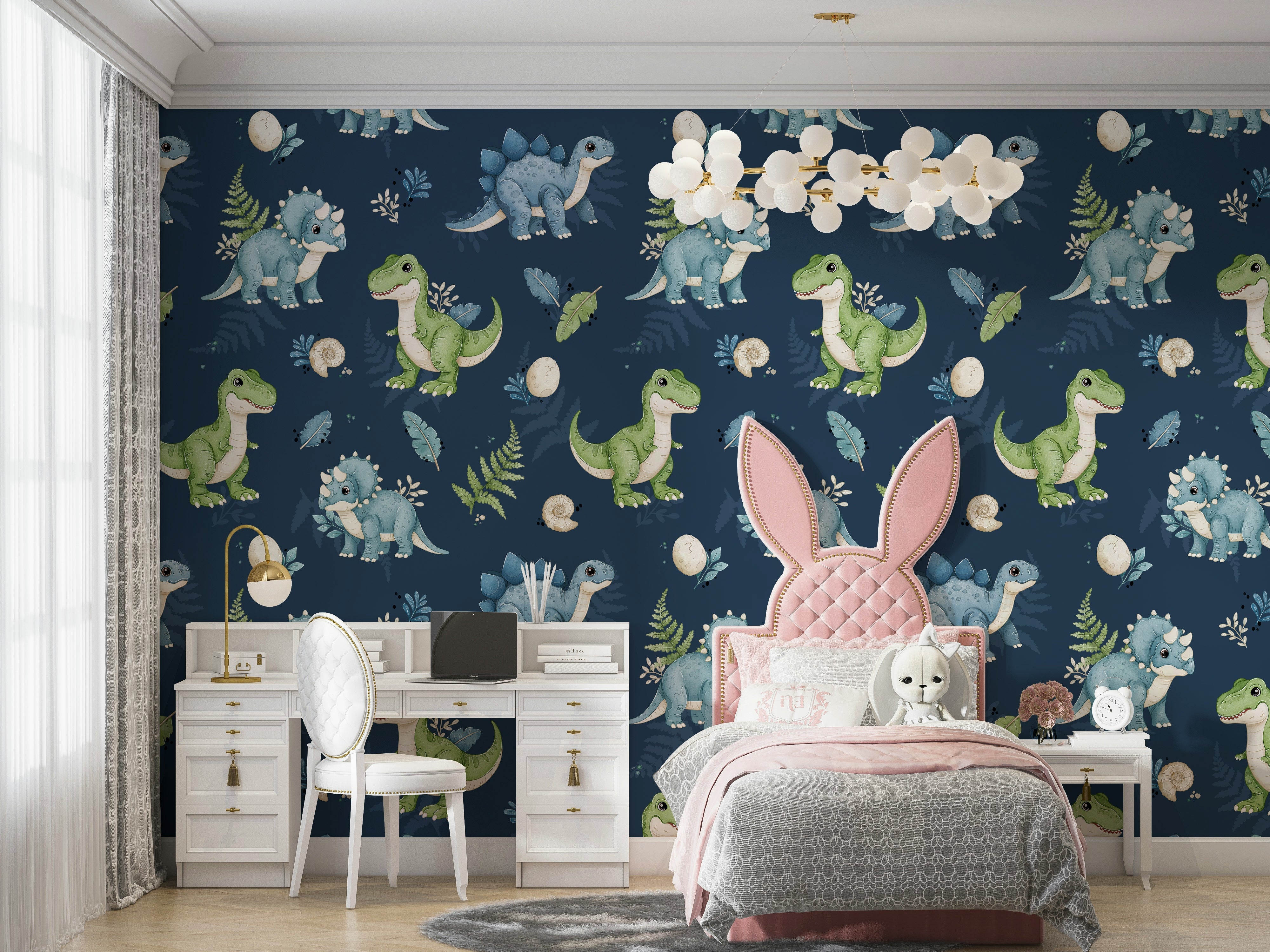 Add bold style and prehistoric fun to your child’s space with Dino Pals Navy a vibrant dinosaur wallpaper designed for modern kids rooms and nurseries. Featuring charming green and blue dinos, leafy greens, and hatching eggs on a deep navy background, this design brings both imagination and sophistication. The peel-and-stick format makes it renter-friendly and easy to install or remove. Ideal for parents or interior designers seeking a playful statement wall, Dino Pals Navy delivers big charm in a bold color palette—perfect for sparking dino-sized dreams.