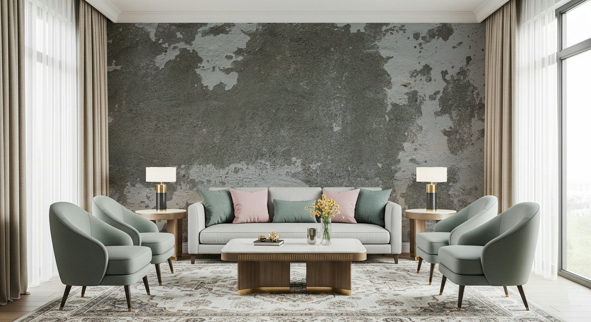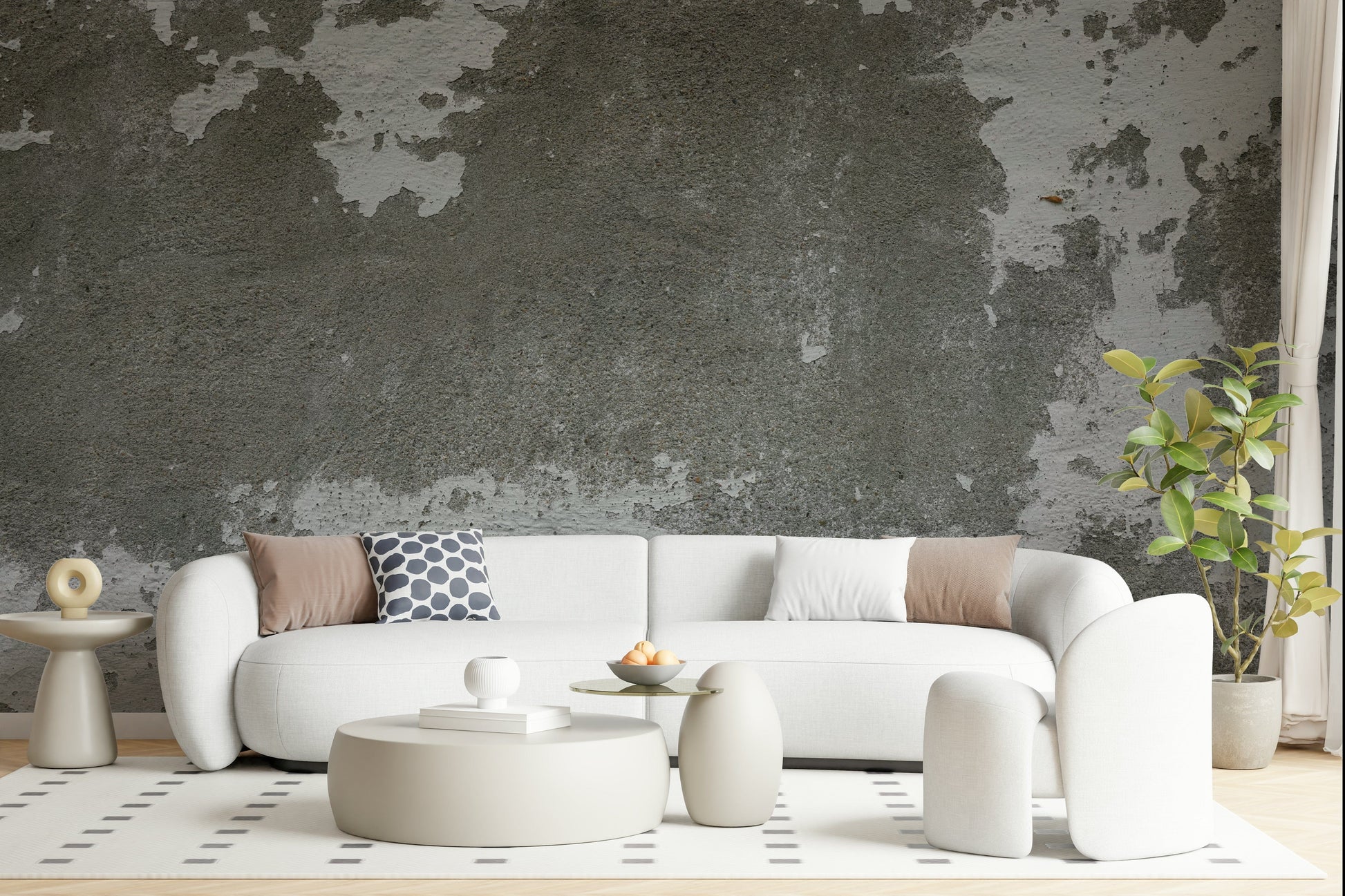 Introduce texture and character to your walls with this distressed wallpaper. The design showcases the beauty of imperfect surfaces, with its weathered concrete and remnants of peeling white paint. The neutral colour palette makes this wallpaper versatile for any space, including living rooms, offices, and bedrooms. Use this wallpaper for walls to achieve an urban, sophisticated atmosphere that enhances your home's interior. Transform a room with this striking and unique wall covering.