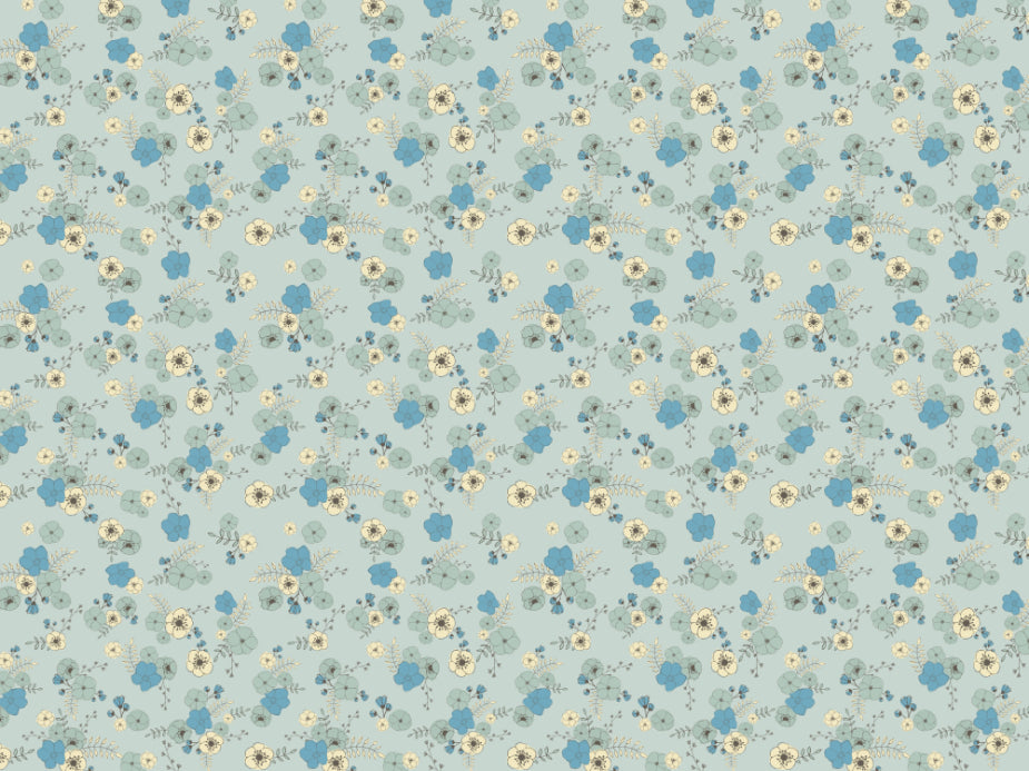 Artistic pastel blue wallpaper with dainty ditsy flower designs.