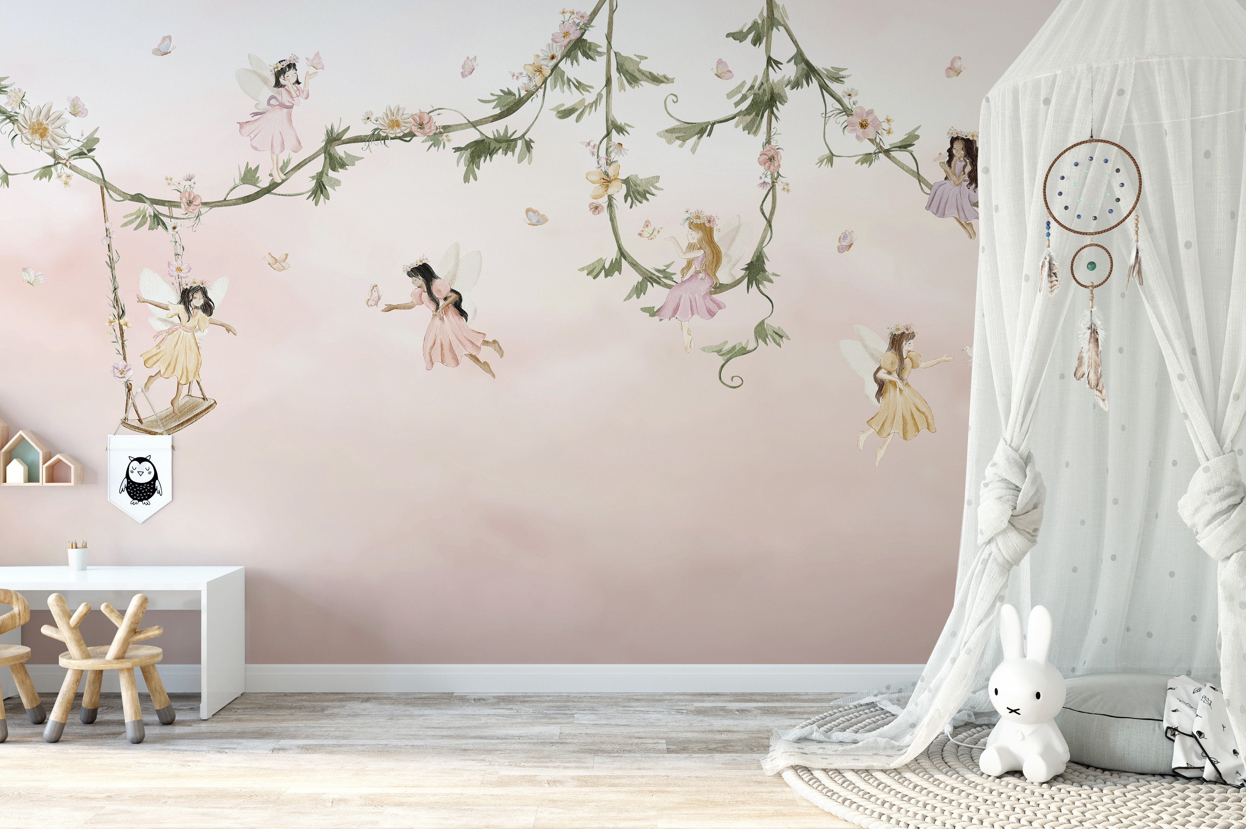 Capture the essence of childhood magic with the dream flight wall mural. This enchanting wallpaper features whimsical fairies and delicate flowers, creating a dreamy atmosphere in any girl's room. The soft pastel colours and intricate details make it an ideal choice for a serene and magical space. Each fairy and blossom is crafted to ignite imagination and bring joy to your child’s heart. This mural provides a beautiful backdrop for storytelling, playtime, and peaceful sleep. Invest in the Dream Flight Wall Mural today, and create a timeless, magical environment for your child to cherish. Shop now and delight in the beauty of fairies and flowers, making your girl’s room a haven of wonder and enchantment.