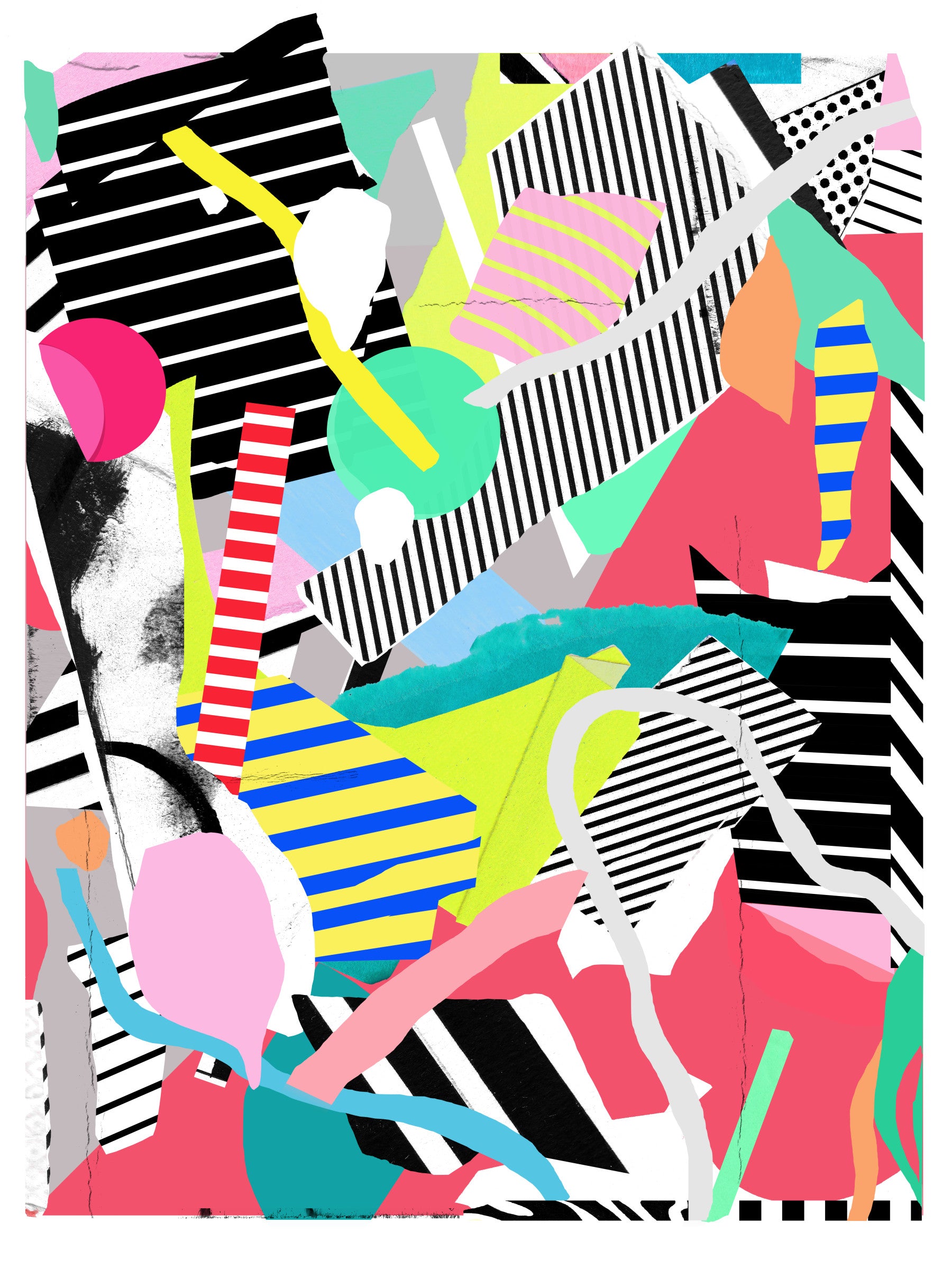 Escape into the vibrant realm of imagination with Dreamer a visually stimulating wallpaper that ignites creativity and fuels the soul. This dynamic design features a captivating collage of abstract shapes, bold stripes, and playful colors, carefully arranged to evoke a sense of whimsical energy. The contrasting patterns create a harmonious chaos, mirroring the unpredictable yet exciting nature of dreams. Let the playful use of pinks, teals, yellows, and the grounding force of the black and white lines guide you on a journey through your inner landscape. This wallpaper is a celebration of possibility, a reminder to embrace the unconventional, and a constant invitation to unlock your limitless potential. Transform your screen into a portal of inspiration and let "Dreamer" be the backdrop to your next great vision.