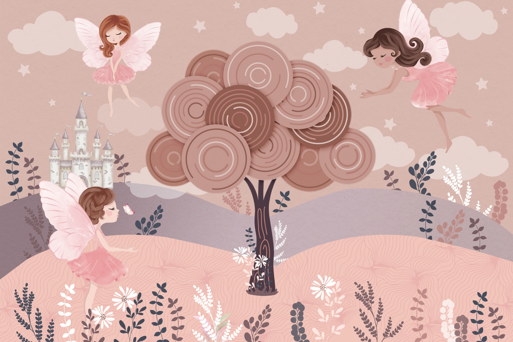 Kids' bedroom wallpaper featuring fairies and soft hues