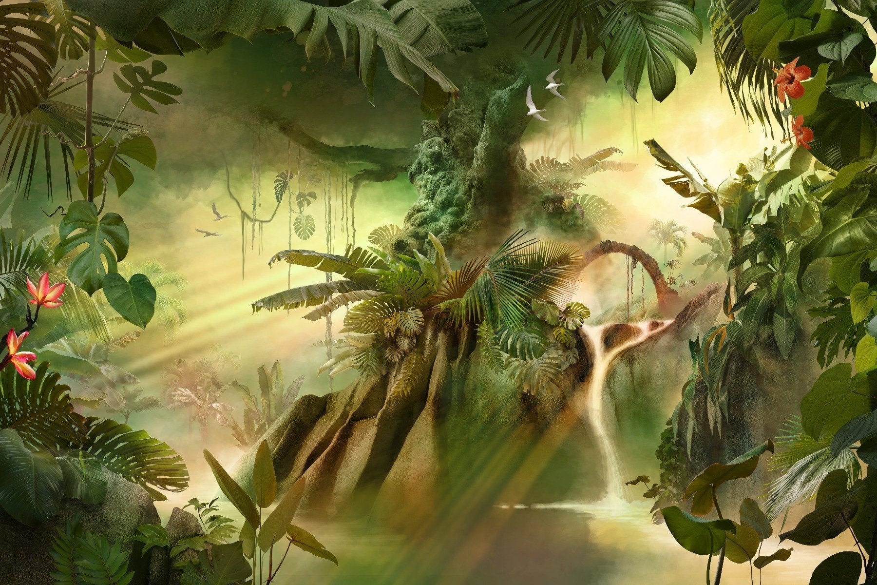 Bring the lush beauty of the great outdoors into your space with our stunning natural dreamy forest mural wallpaper. This artistic masterpiece features an enchanted jungle scenery, complete with a variety of vibrant green hues that are sure to invigorate any room. Adding this green wallpaper to your walls will instantly transport you to a dreamy forest, where you can let your mind wander and soak in the natural beauty around you. With every glance at this exquisitely designed mural, you'll feel like you're exploring an uncharted forest it's the perfect way to bring a touch of magic to any space.