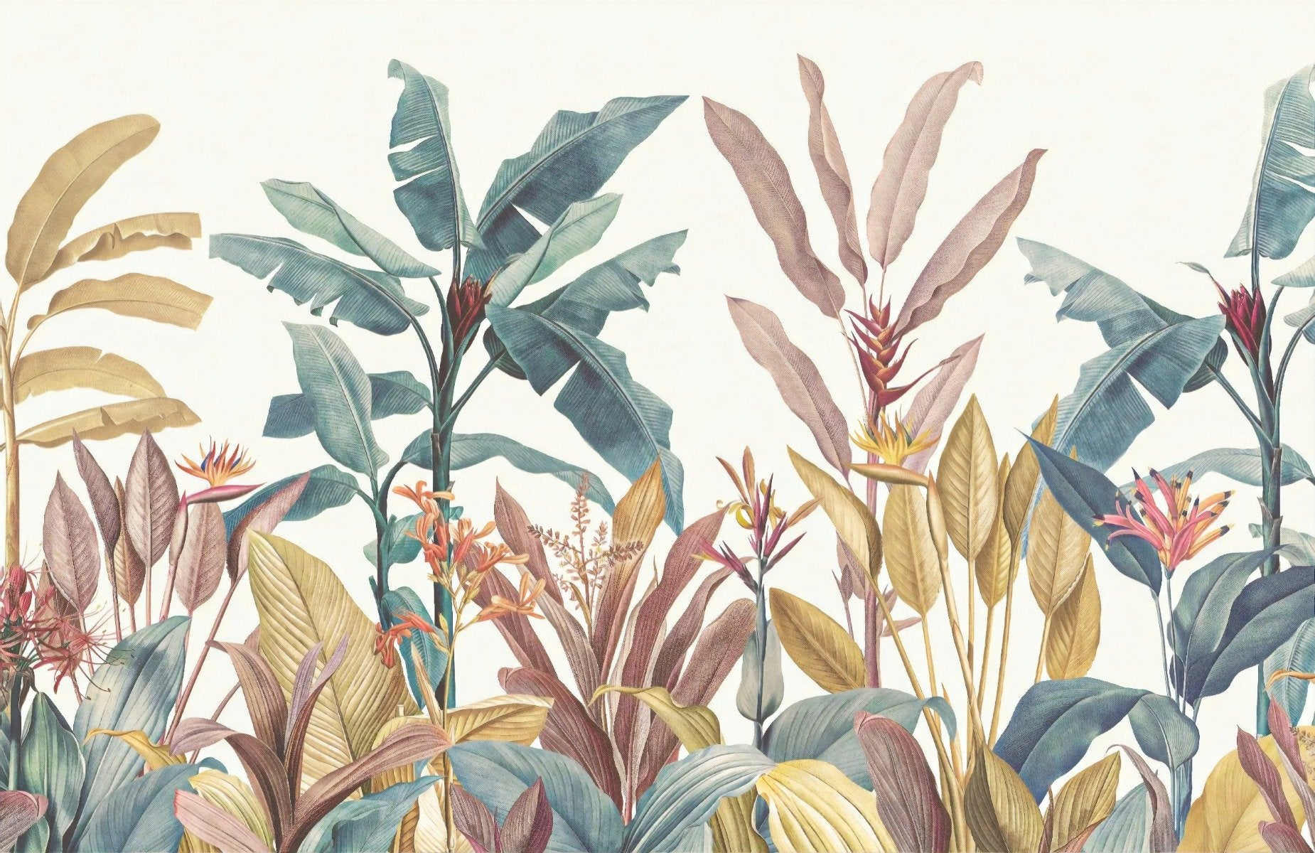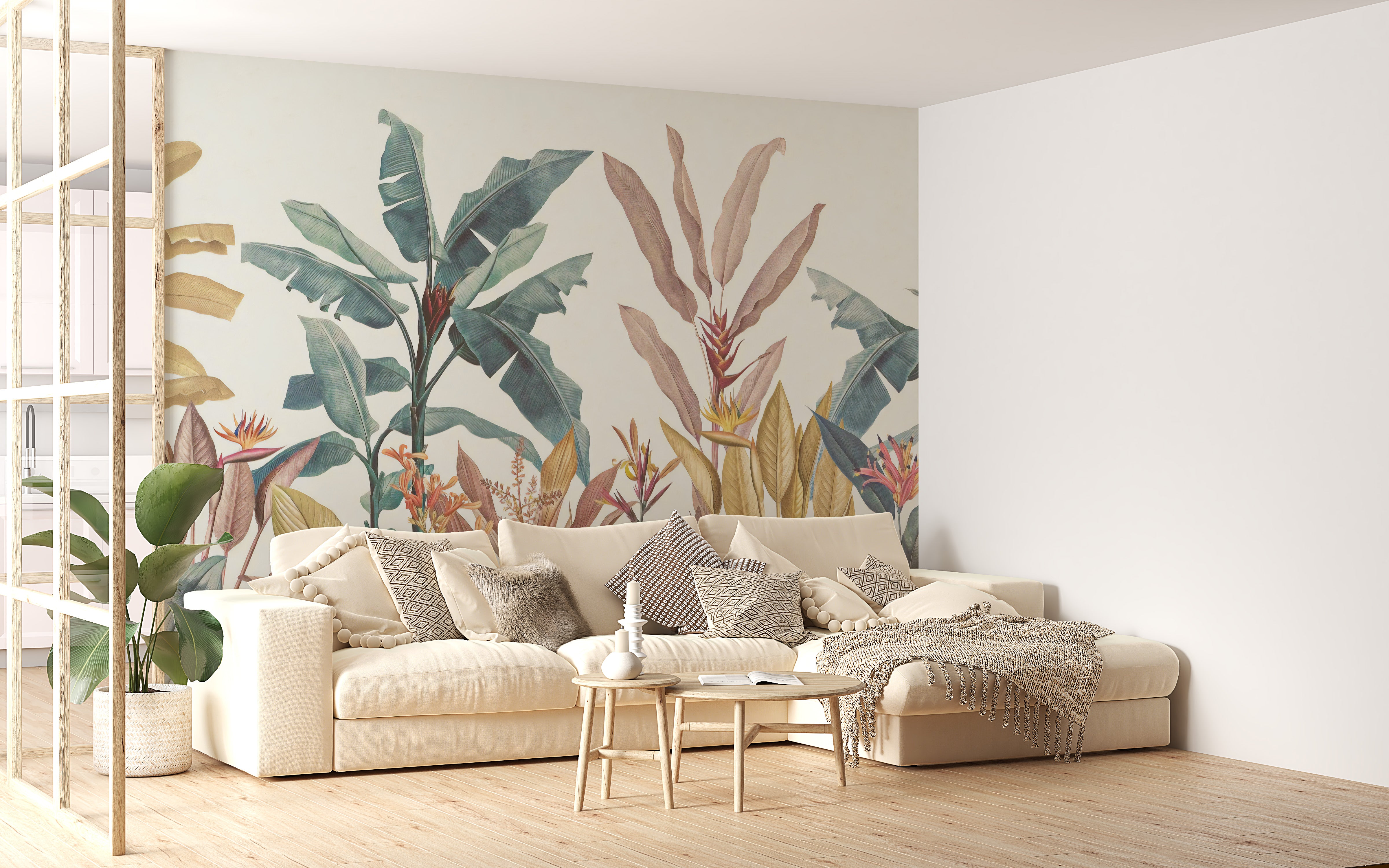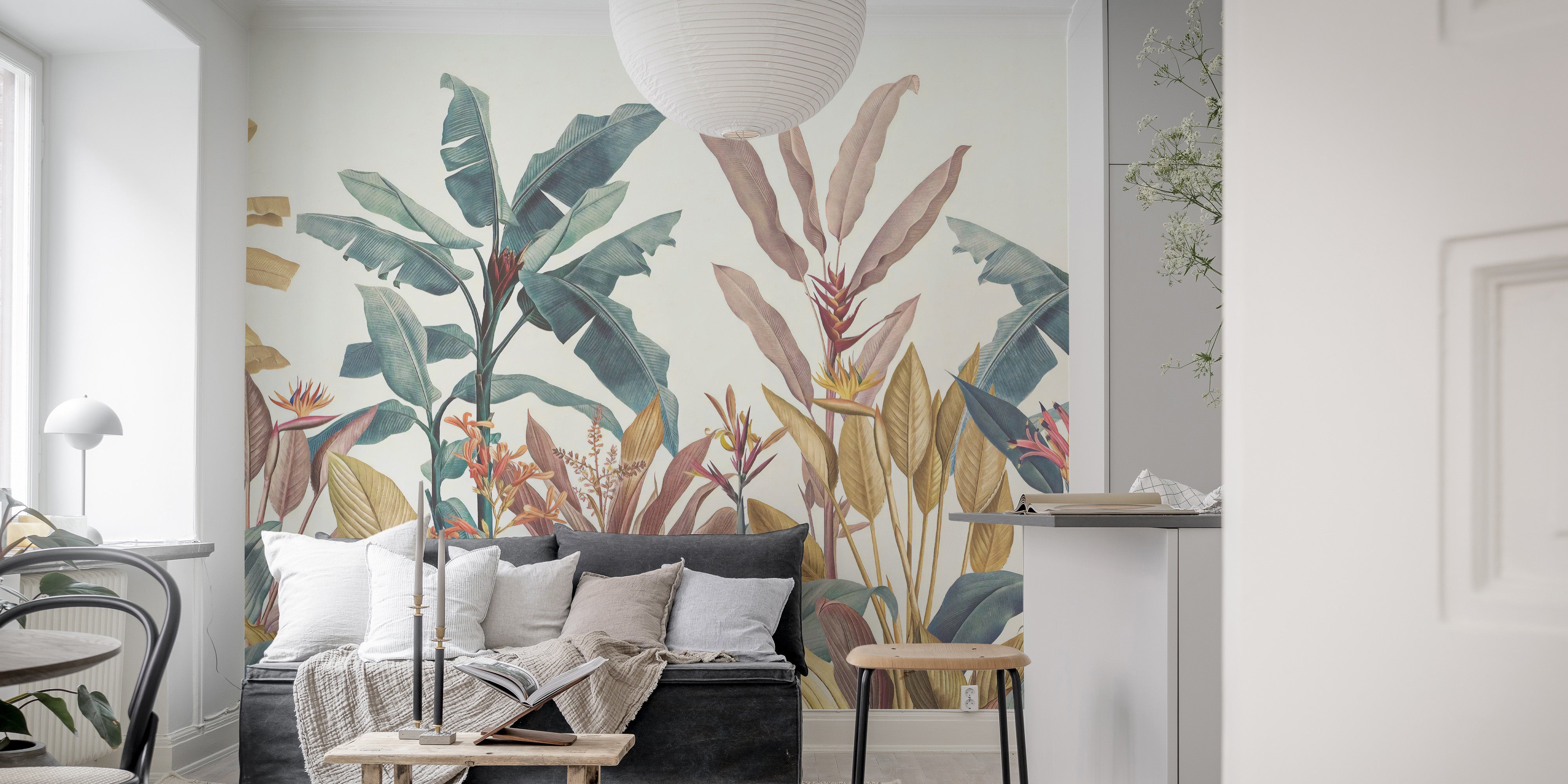 Dusty Pink Green Tropical Wallpaper Mural - Giffywalls