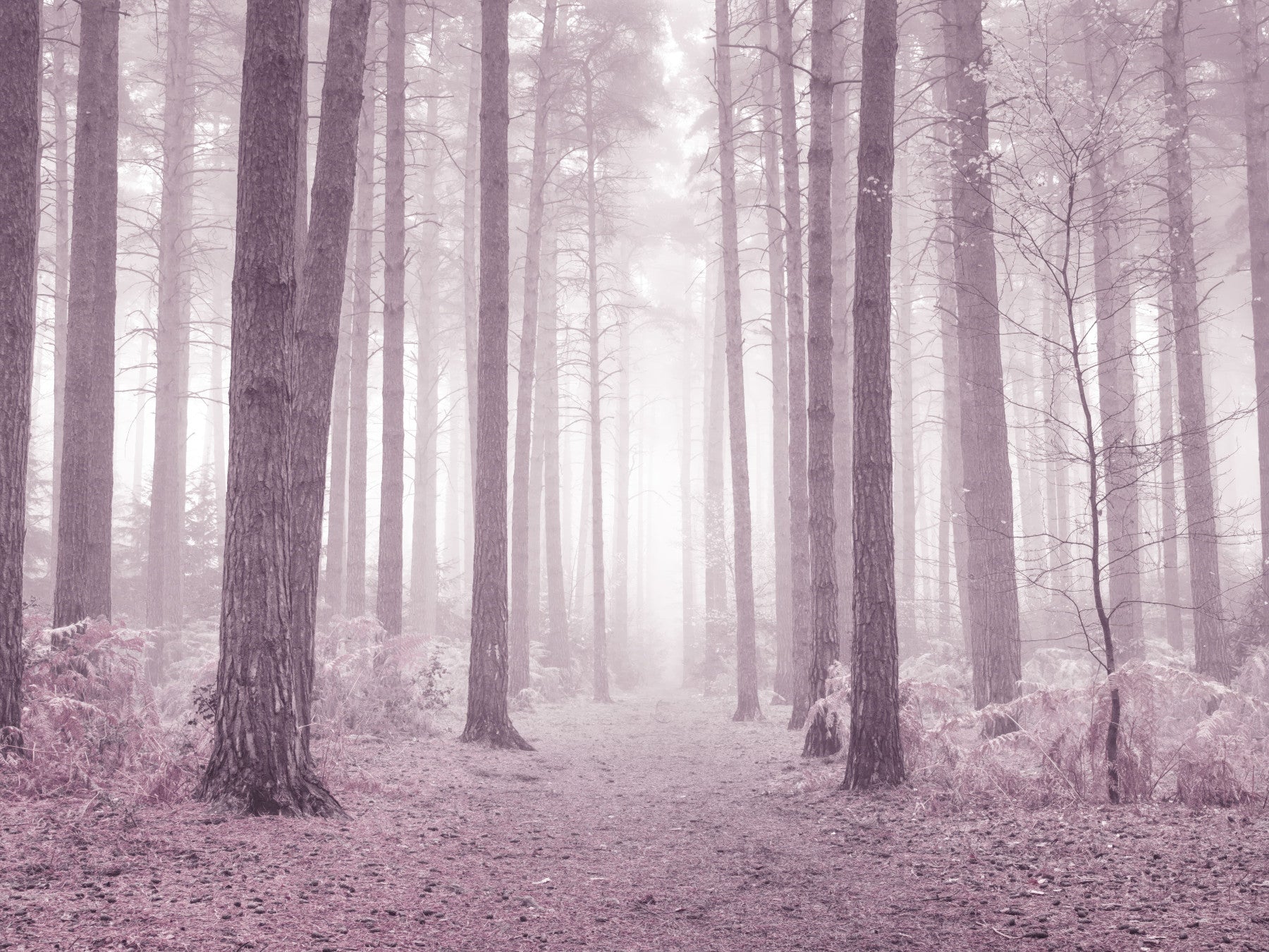 Purple tinted Dusty trees wallpaper mysterious woodland scene.