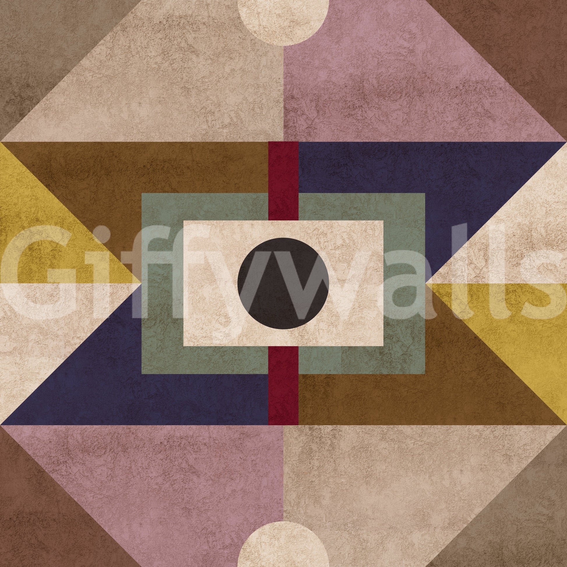 This abstract wallpaper features a striking composition of geometric shapes and muted earth tones. The interplay of varying textures and shades creates a visually captivating design, while maintaining a sense of calm and tranquility. The palette, featuring beige, brown, dusty rose, and subtle greens, provides a serene backdrop for any space. This design balances modern aesthetics with a natural, earthy feel, making it ideal for those seeking a sophisticated and understated look.