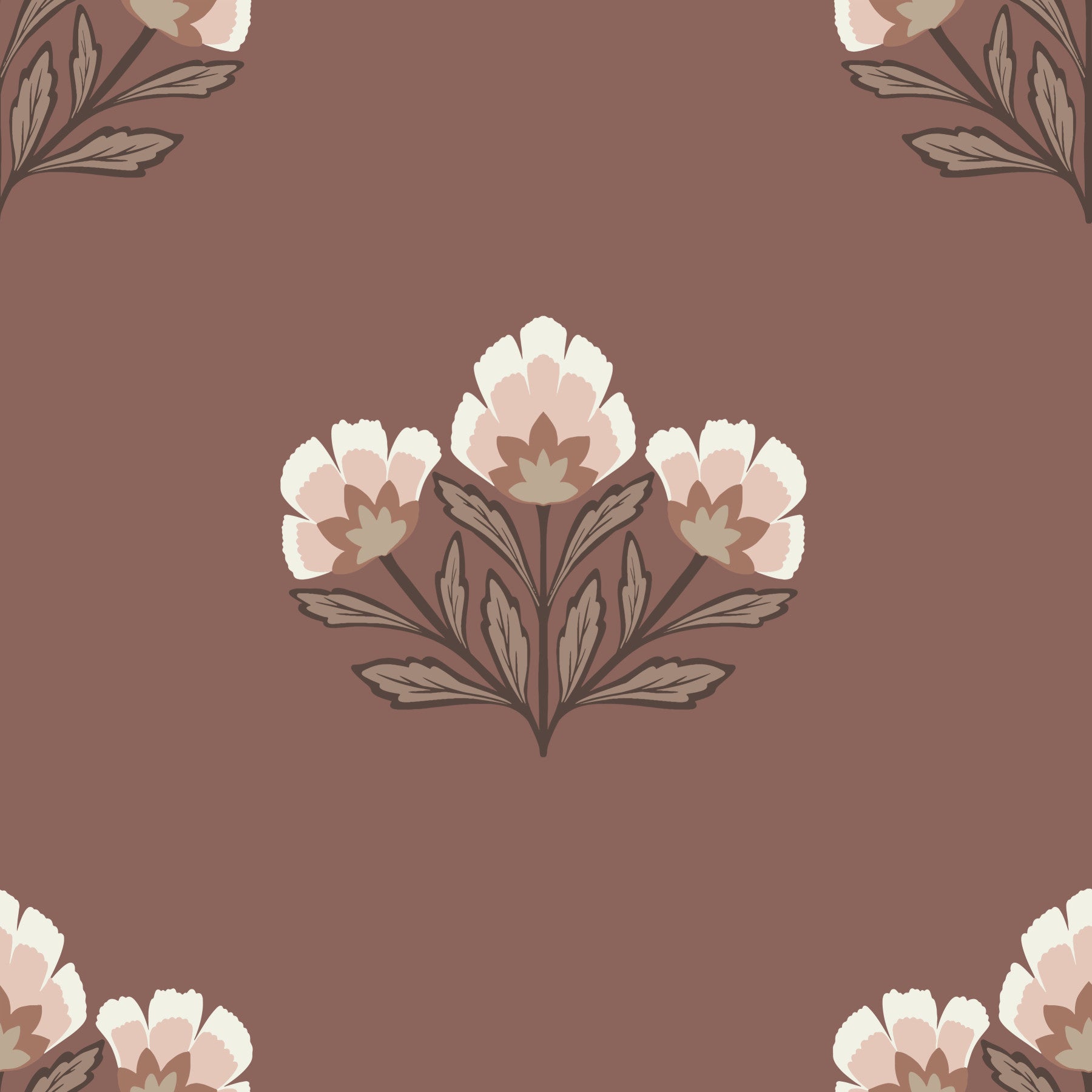 Classic Earthy wallpaper, subtle repeating flower, serene backdrop feel.