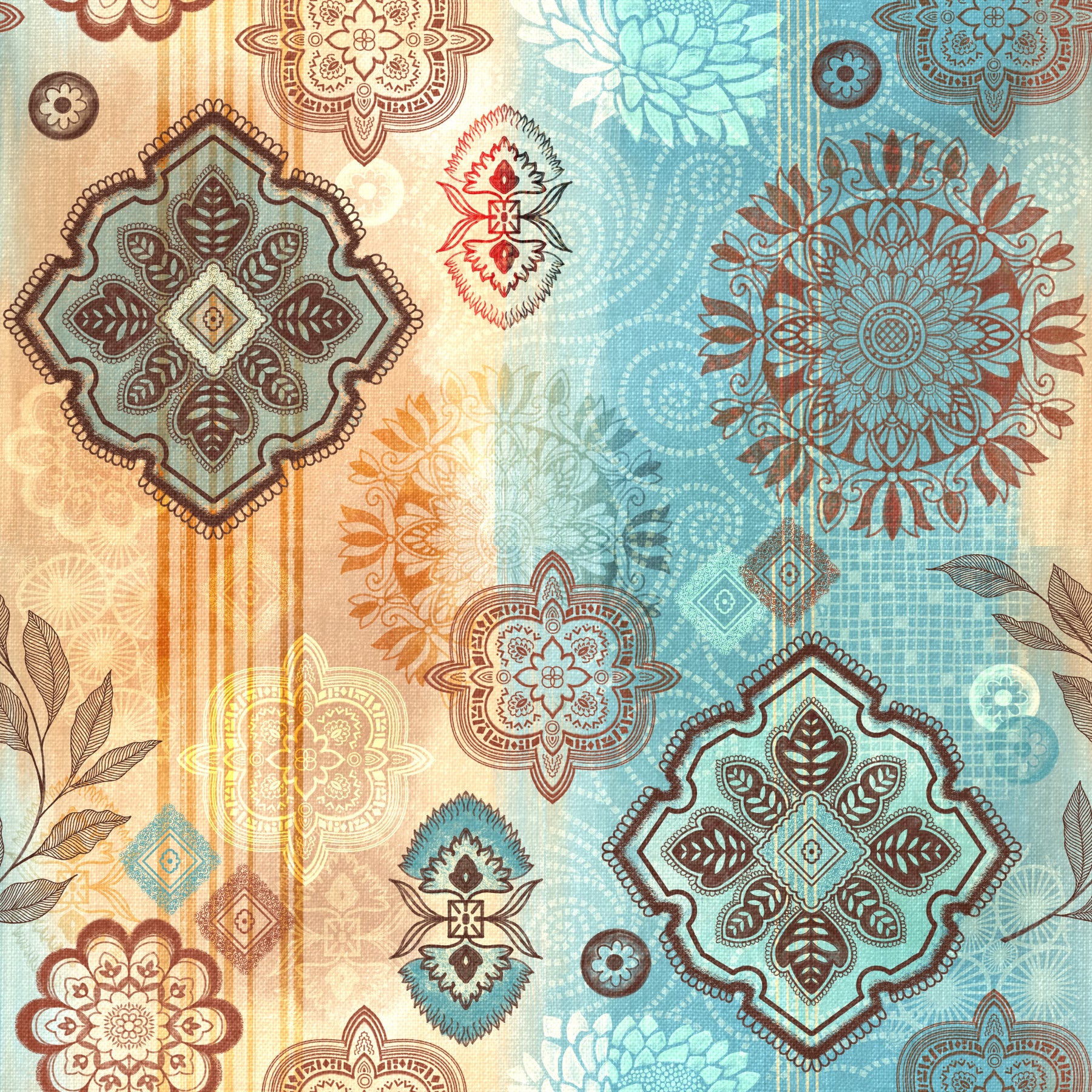 Earthy Boho Chic Wallpaper — geometric and organic motifs in natural, warm shades.