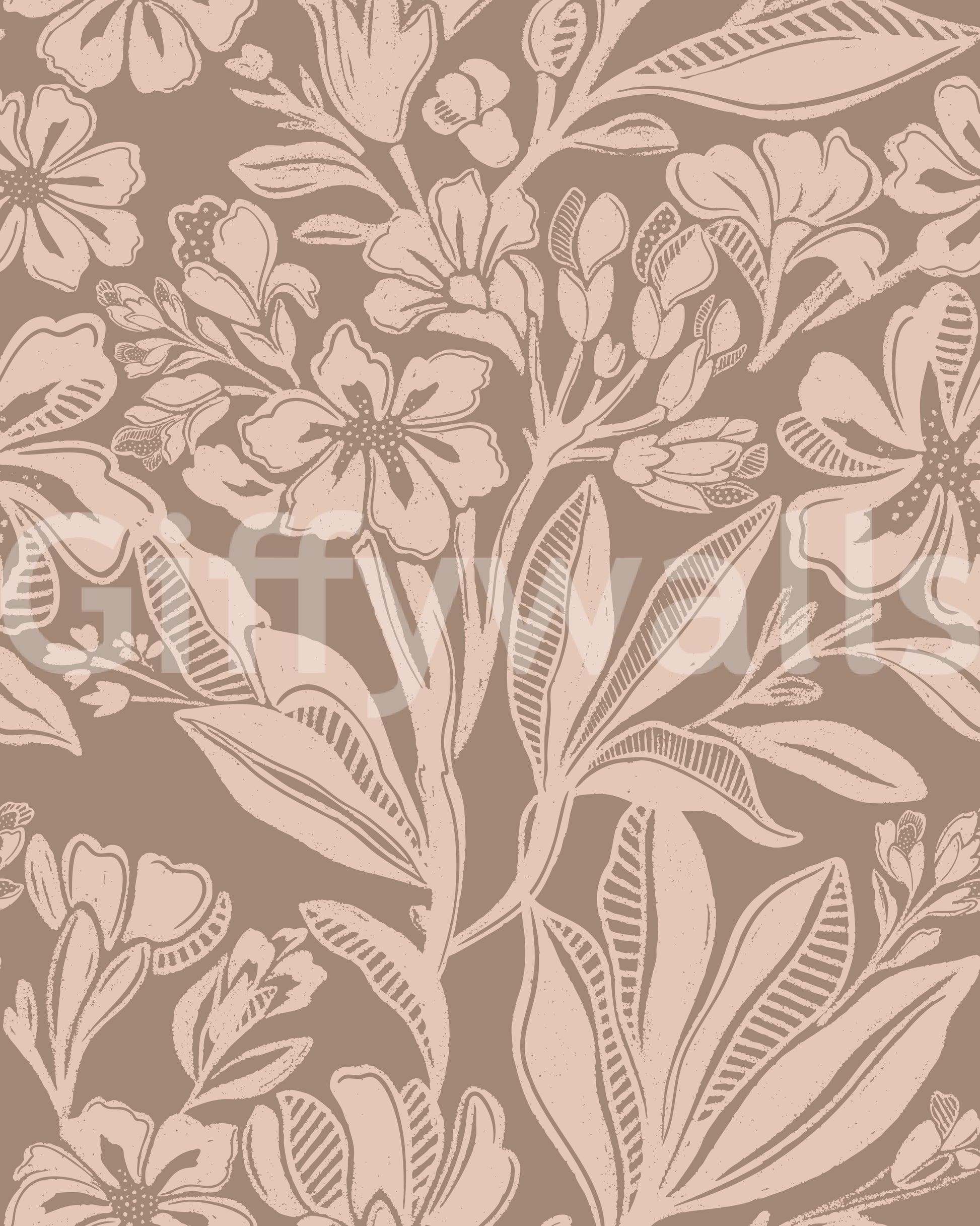Embrace understated luxury with this wallpaper's earthy elegance. The design showcases a richly detailed floral pattern in soft blush pink against a warm taupe backdrop. The textured effect adds a touch of tactile warmth, while the intricate hand-drawn style elevates the overall aesthetic. This design is perfect for adding a layer of sophisticated calm to living spaces, bedrooms, or home offices. Its muted tones and organic forms create a feeling of tranquil sophistication, ideal for fostering a peaceful and harmonious atmosphere. The timeless design ensures its enduring appeal in any setting. Enjoy the subtle beauty and refined charm of this unique wallpaper.
