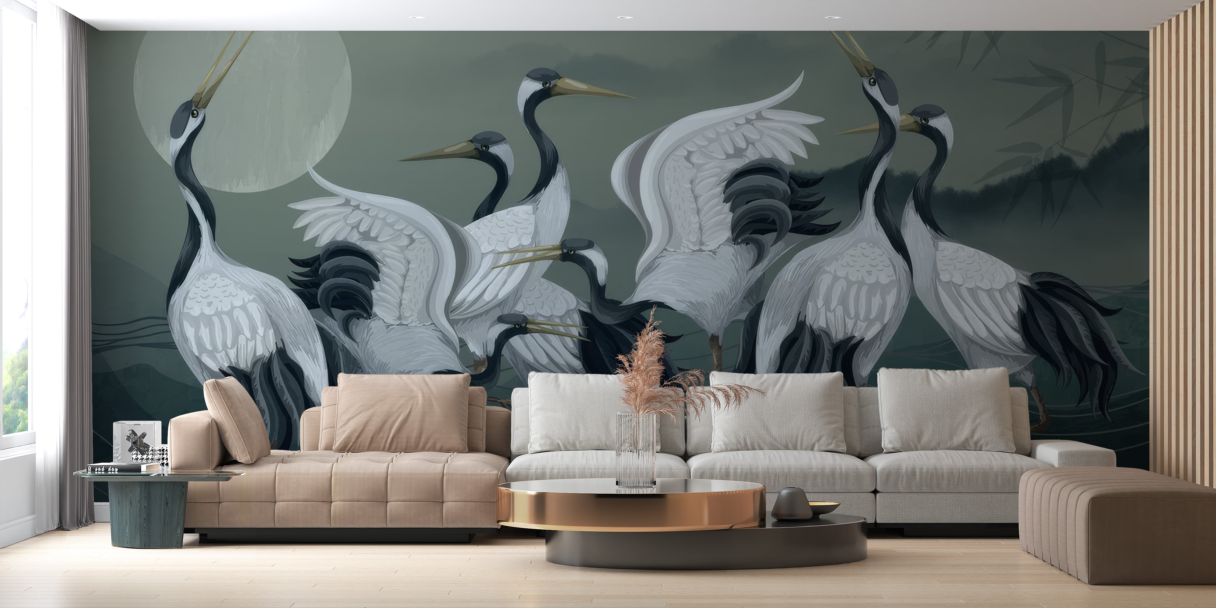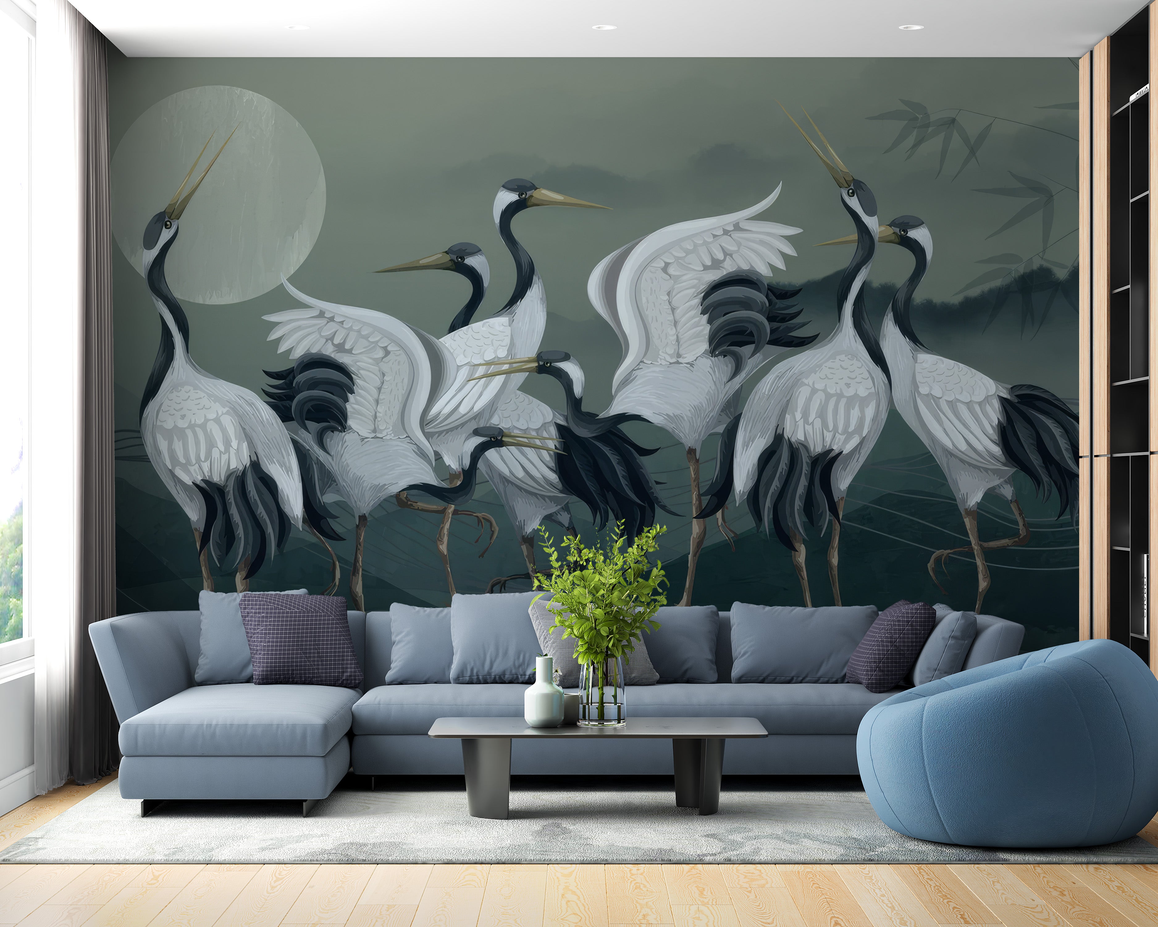 The Elegant Crane Birds Wallpaper presents you a scene that is absolutely mesmerizing life of cranes in its native habitat--truly rich in detail and rich in color. This wallpaper brings the timeless grace of these magnificent birds into your home, producing an atmosphere which is both serene and sophisticated. Suitable for living rooms, bedrooms or any space in need of a hint of natural beauty, the design conveys the loveliness of cranes at leisure. The wallpaper is crafted from first-rate materials, and is sure to last for many years. This exquisite wallpaper allows you to experience the delicate elegance of cranes and feel of nature as well, which makes it a perfect means of adding some sophistication and serenity to your home decor.