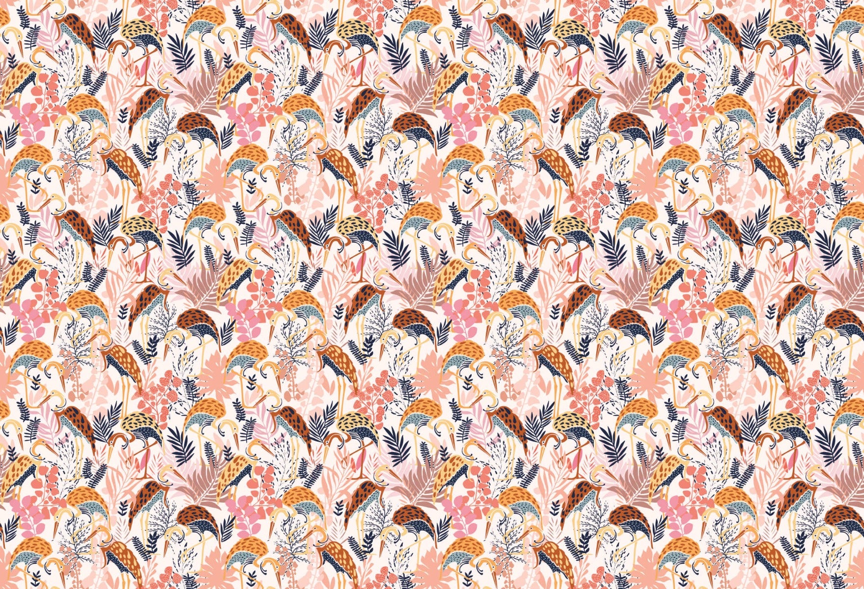 Immerse your walls in the serene dance of cranes with this peach wallpaper. Each roll unfurls a rhythmic pattern of these graceful birds amidst a backdrop of soft peach hues, mingled with hints of navy and white. Crafted for those who appreciate nature's beauty reflected in their living spaces, this wallpaper promises a seamless visual experience that captivates and soothes. A tribute to the artful ballet of cranes in the wild, this print invites a sense of gentle movement and refined wildlife charm into your home. Perfect for creating a focal point or accentuating the warmth of a room, it's a sophisticated touch that speaks volumes in style.