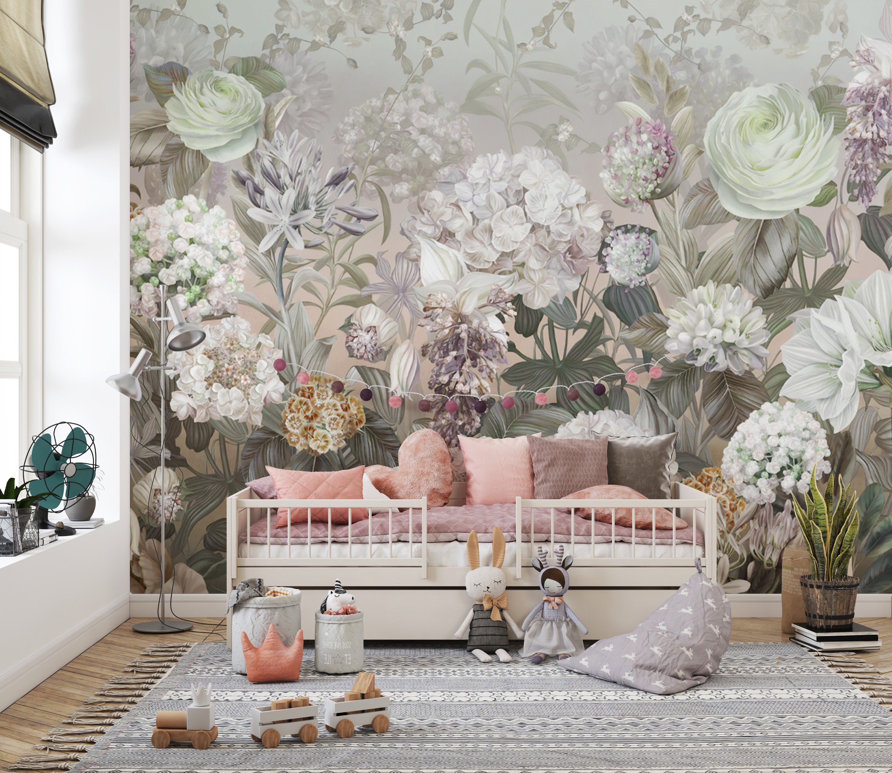 Bring a touch of nature indoors with the elegant pastel botanical wallpaper. Featuring delicate blooms and soft hues, this floral wallpaper showcases hydrangeas, roses, and lilies in a beautiful, nature-inspired design. The subtle color palette blends seamlessly with modern and classic interiors, making it perfect for living rooms, bedrooms, or feature walls. This vintage flower mural adds depth and texture, creating a serene, sophisticated backdrop. Crafted with high-quality materials, this botanical wallpaper offers a smooth finish and lasting beauty. Perfect for those seeking a romantic flower wallpaper that combines elegance with natural charm, enhancing any space effortlessly.