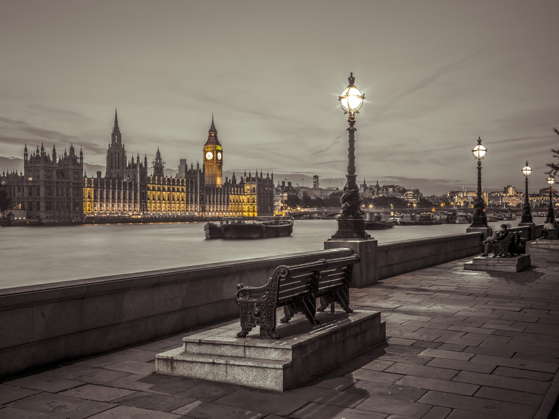 Embankment Bench Wall Mural with the view of Big Ben and the Thames.