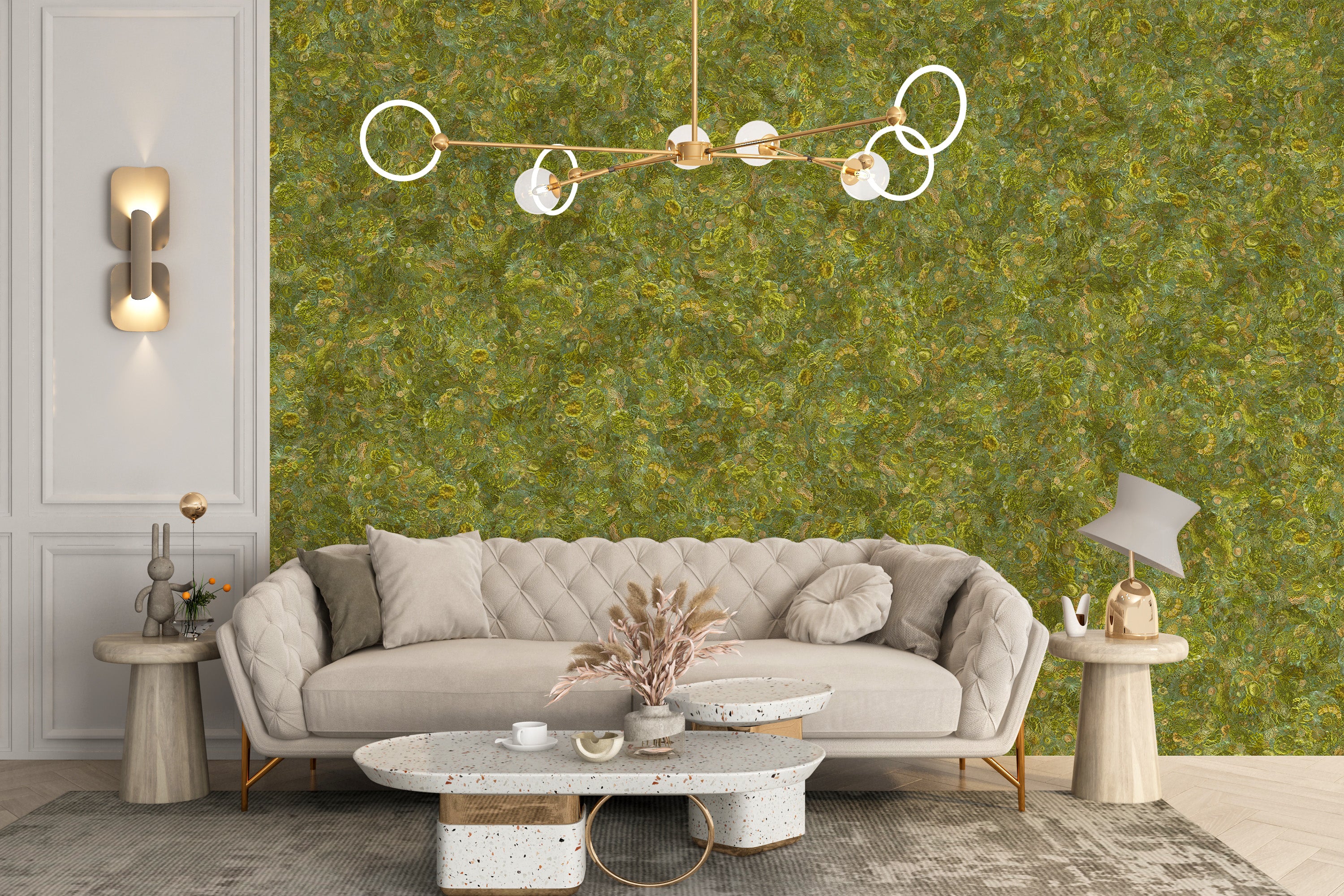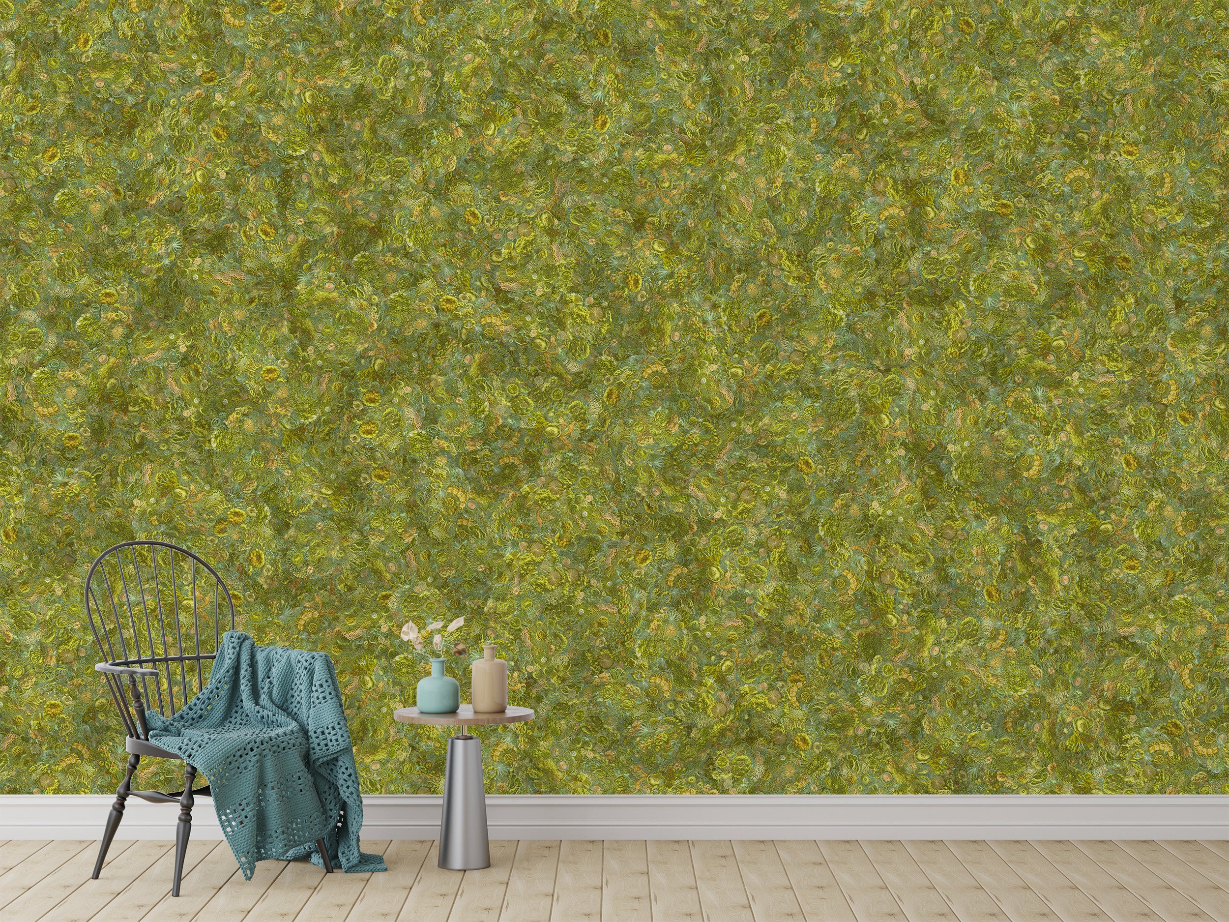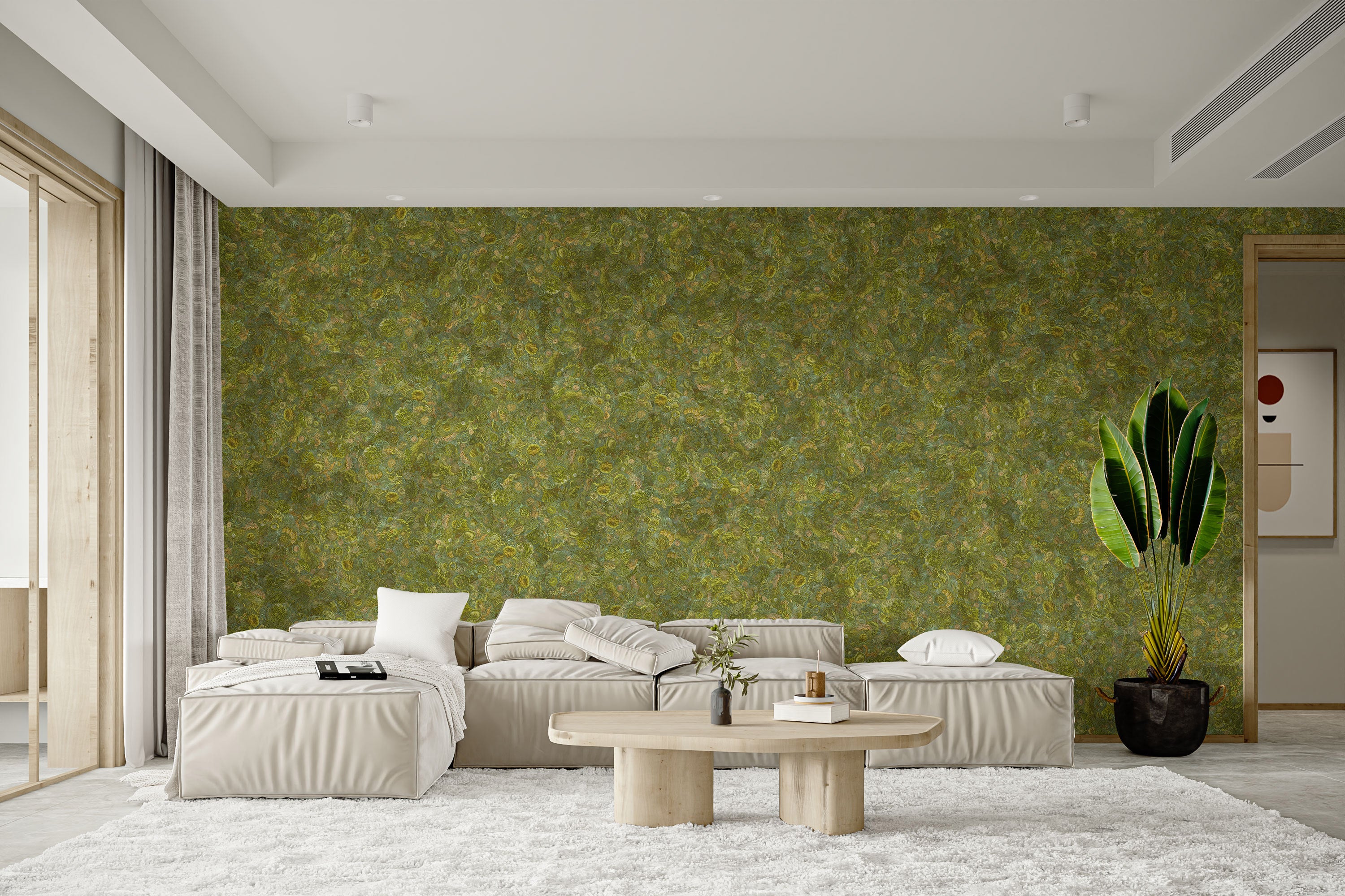 Textured moss green wall murals decor
