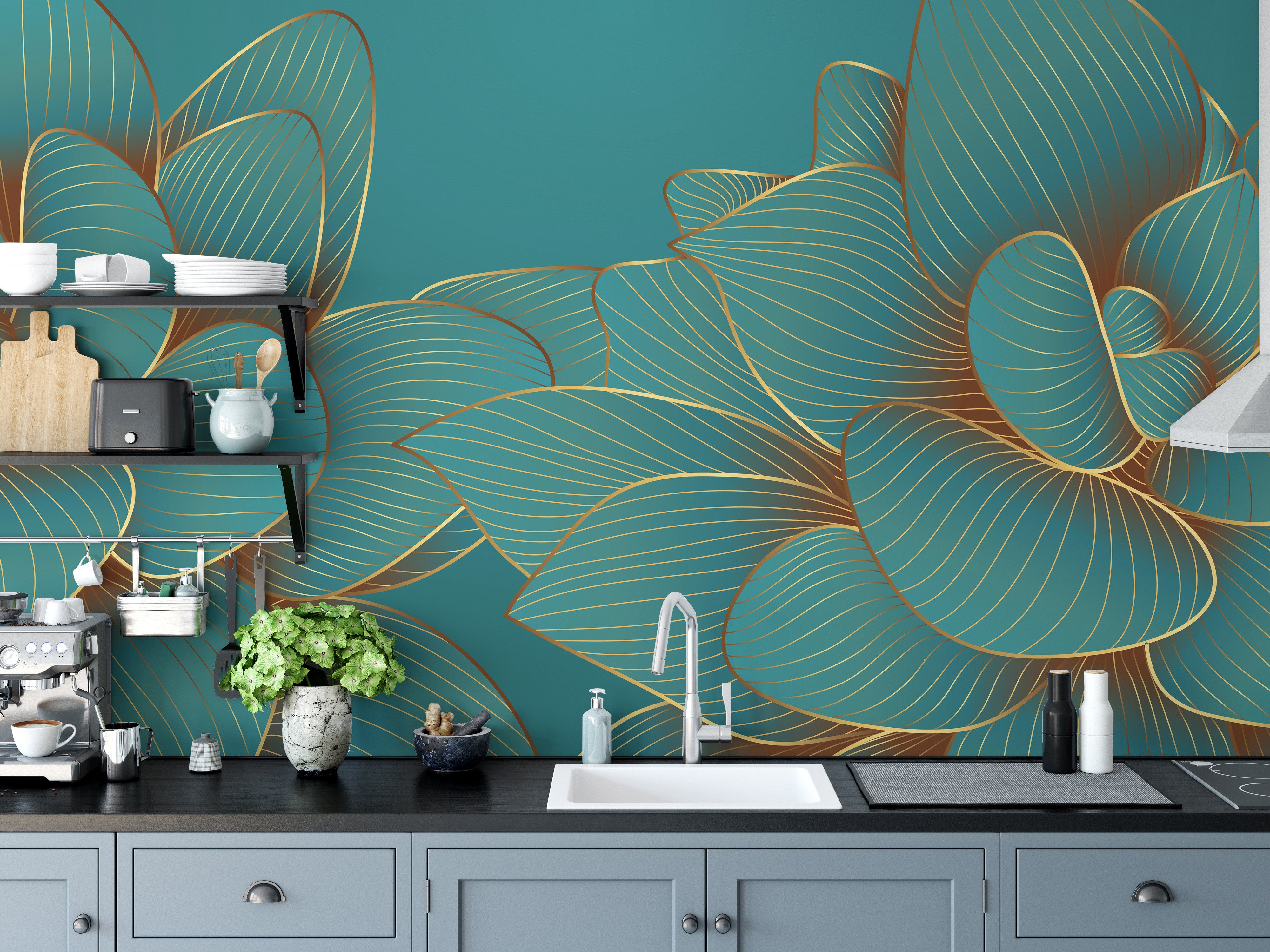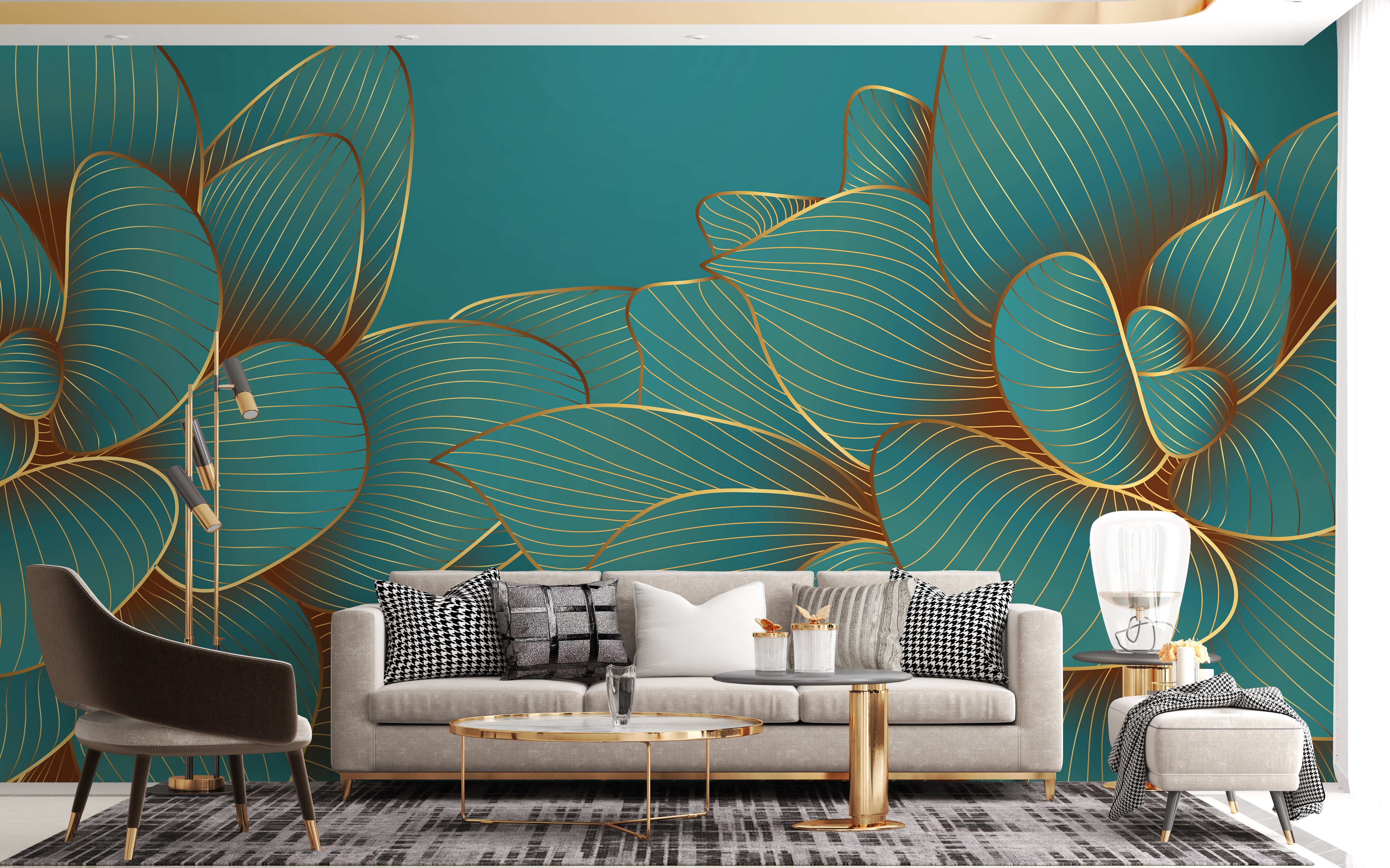A gold emerald lotus floral mural wallpaper can bring life to any living room. This unique design is truly captivating, with its intricate details that draw you in. It's the perfect way to add a pop of color and elegance to your plain walls. The gold accents add a luxurious feel, and the lotus flowers symbolize purity and eternal bliss. This wallpaper is perfect for those who want to create a stunning feature wall that will leave their guests in awe. It's truly a work of art that will never go out of style. Give your living room the makeover it deserves with this stunning floral wallpaper.
