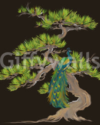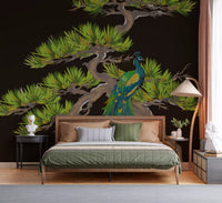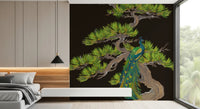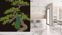 Emerald Peacock on Matsu Pine Japanese style Wall Mural