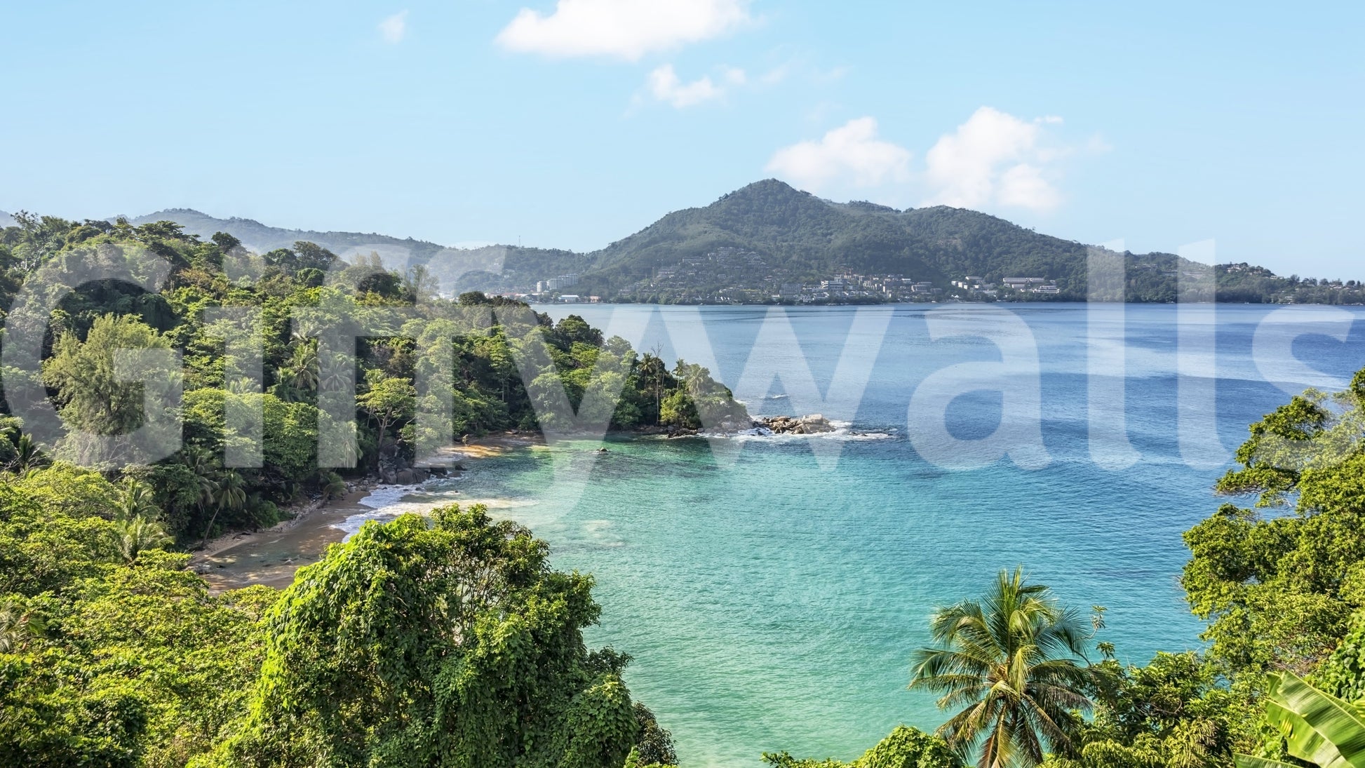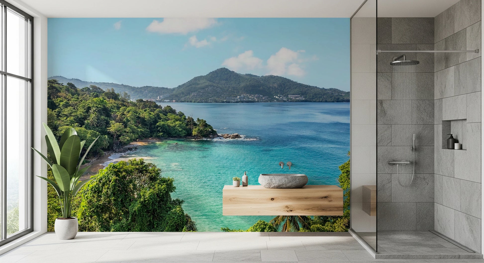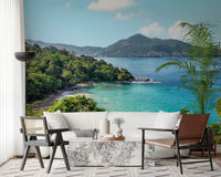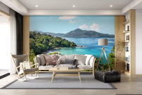 Bring the beauty of a tropical shoreline into your home with this breathtaking wallpaper for walls. Vivid emerald waters meet lush, verdant forests under a clear blue sky, creating a serene and inviting atmosphere. The detailed landscape adds depth and dimension to any room, making it perfect for a feature wall in your living room, dining area, or bedroom. The rich colours and natural scenery provide a stunning backdrop, enhancing the sense of peace and relaxation within your interior space. Let this picturesque view transform your walls into a window to paradise.