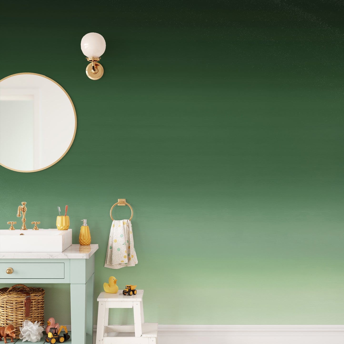 Emerald whisper gradient wallpaper for a serene bathroom oasis.