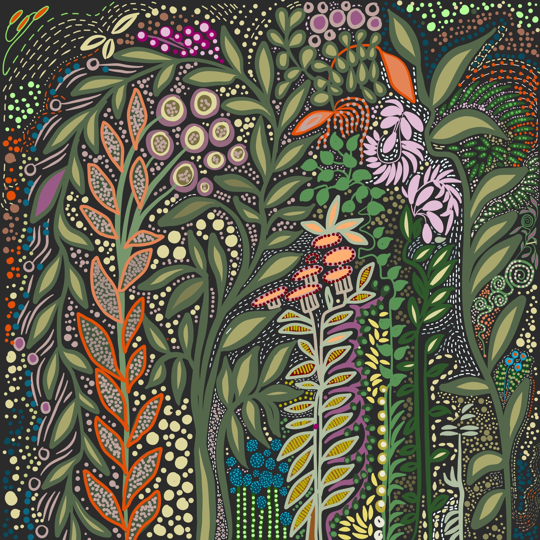 Step into a whimsical world with "Enchanted Foliage- Strelitzia Garden," a wallpaper that transforms your screen into a vibrant, dreamlike paradise. This captivating design features an abstract interpretation of the Strelitzia, or Bird of Paradise flower, blended with an array of fantastical foliage. Bold colours and intricate patterns dance across a deep, grounding background, creating a sense of depth and wonder. Imagine yourself wandering through a secret garden, where stylised leaves and playful blooms intertwine in a symphony of organic shapes. This wallpaper is perfect for those who crave a touch of the extraordinary in their everyday life, infusing any space with a sense of creativity, tranquility, and sophisticated charm. Let your imagination take flight amidst this botanical fantasy, where nature meets the abstract in perfect harmony.
