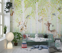 Introduce a magical woodland setting to your home with this whimsical design. Birch trees form the backdrop for charming watercolour animals, including bluebirds and a baby deer. The soft, natural colour palette and hand-painted style lends a gentle, artistic touch. This wallpaper for walls works beautifully in a child’s bedroom, playroom, or nursery, creating a tranquil environment. It creates an inviting, imaginative, and peaceful atmosphere, infusing rooms with a touch of serenity. Soft hues and a hand-painted aesthetic complement a range of interior design choices.