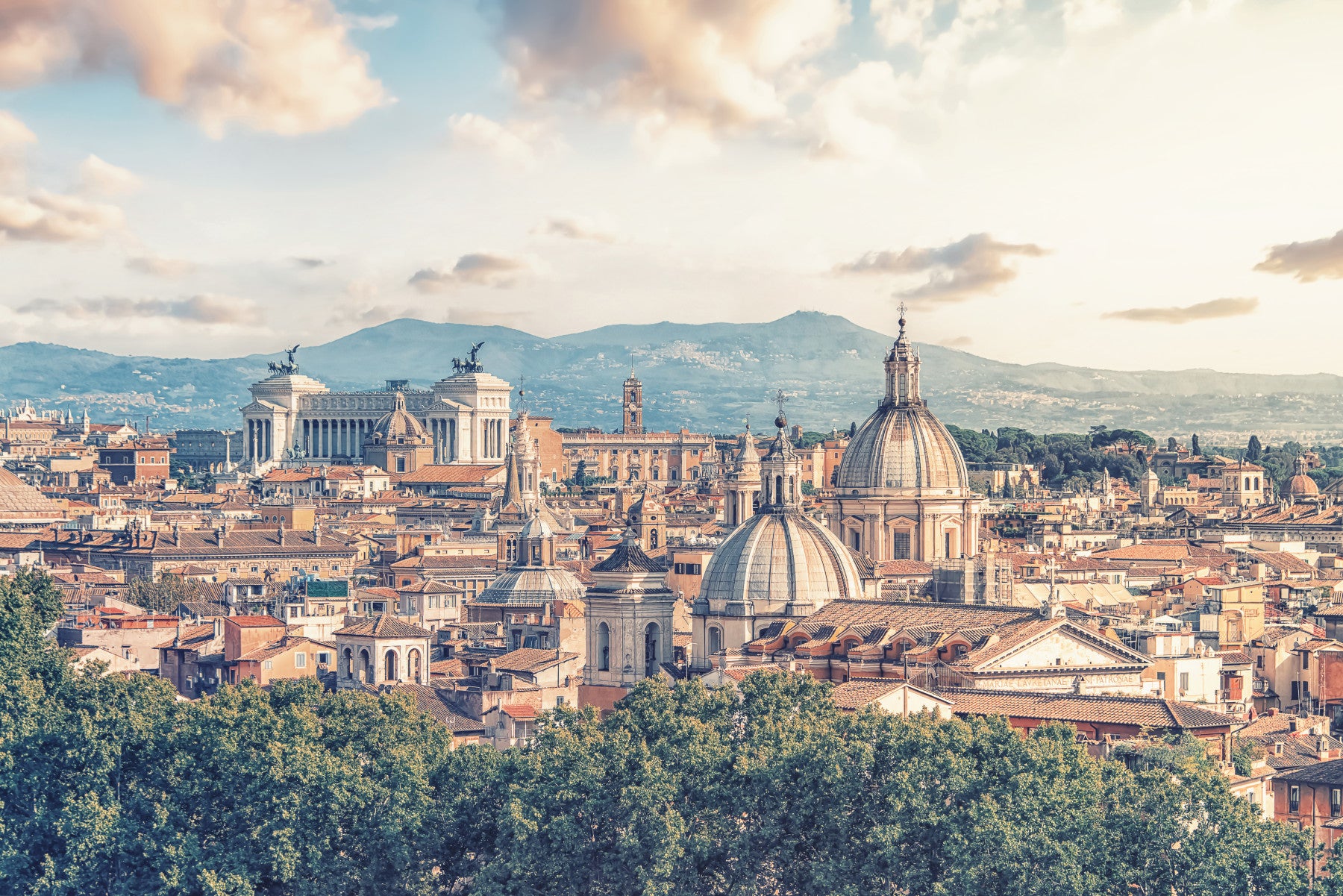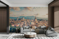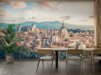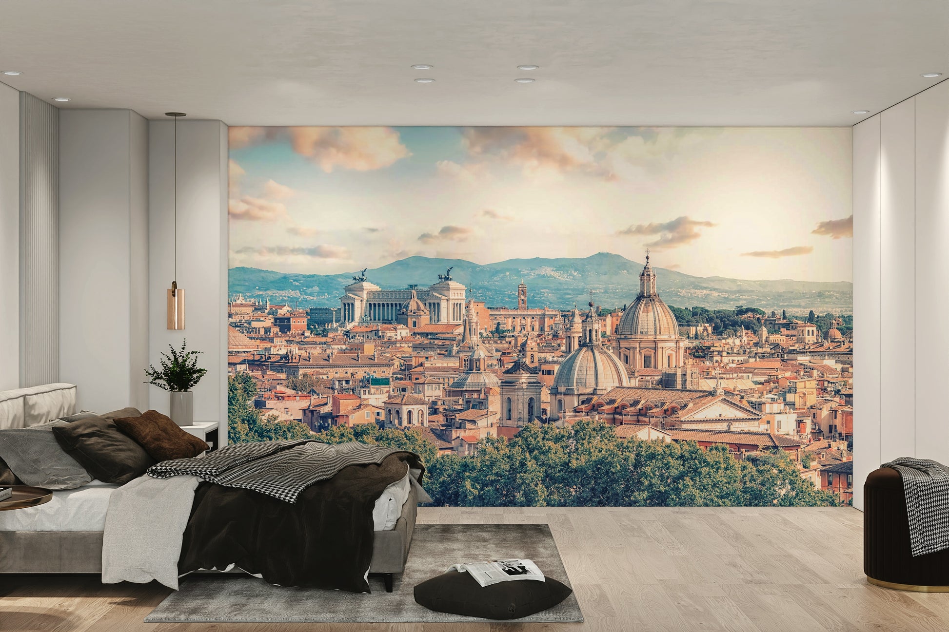 Bring a touch of European elegance to your interiors with this breathtaking Roman skyline. The picturesque scene features iconic buildings under a tranquil sky, lending a sense of grandeur to any space. Use this wallpaper for walls to enhance your dining room, bedroom, or hallway. The design's muted tones and refined aesthetic work wonderfully with both modern and traditional decor, creating an inviting atmosphere with a view.