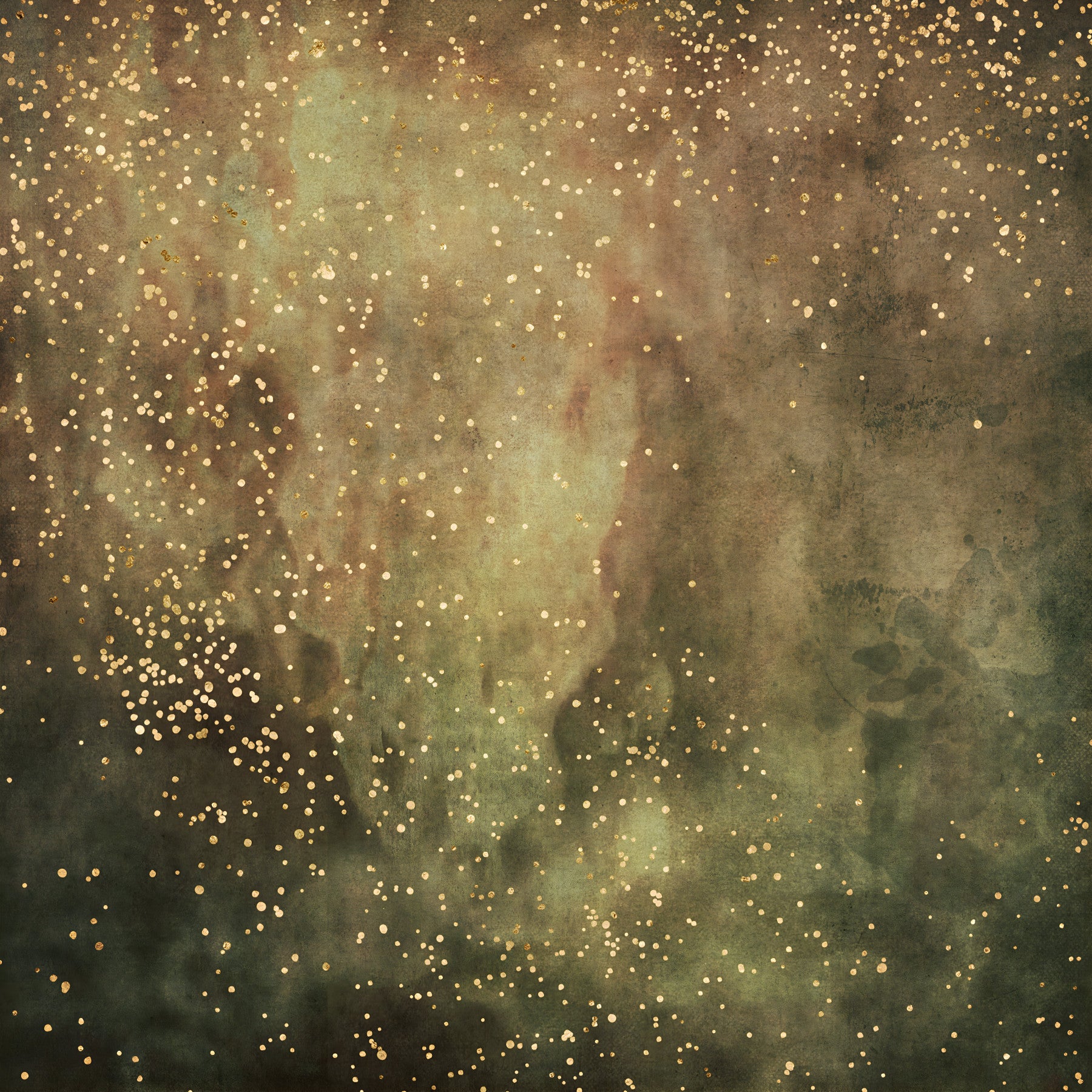 Imagine a fine dust of gold dancing across a misty landscape. The background features a mix of soft browns and greens. Golden specks capture and reflect light, creating a mesmerising effect. Suitable for a living room or bedroom, this design adds a unique touch. The subtle pattern is perfect as wallpaper for walls, enhancing the interior without dominating the space. It blends smoothly with modern and classic furniture.