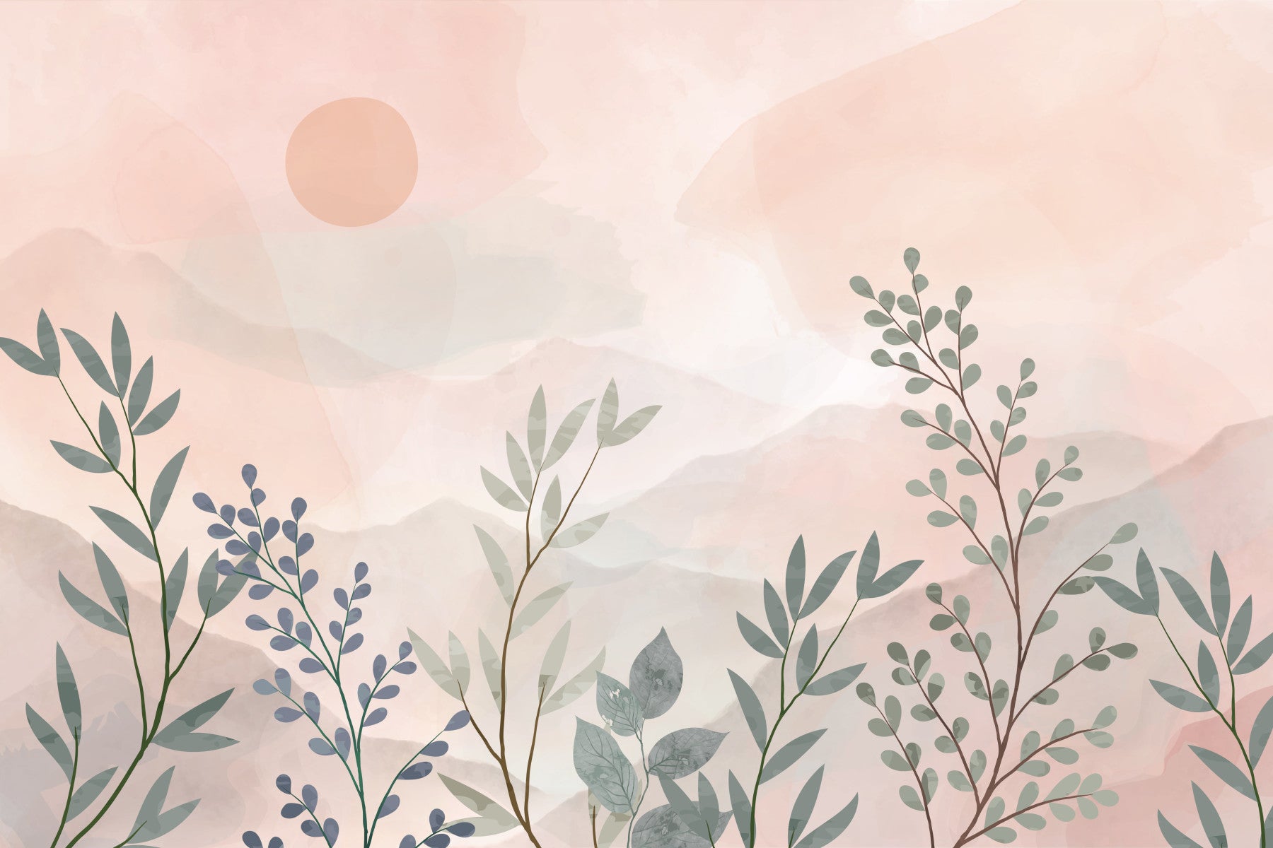 Transform your home with a touch of nature's grace. This wallpaper presents an ethereal garden scene with gentle colors and stylized leaves. The muted palette creates a light and airy atmosphere. Add this elegant wallpaper for walls to your dining room or hallway to craft a welcoming space. The design’s understated sophistication pairs well with Scandinavian decor or adds a whisper of calm to a busy home office.
